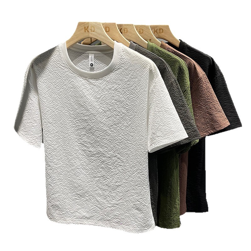 Главная страница > Летняя мужская футболка из высококачественного саржевого хлопка, однотонная, свободного кроя, с круглым вырезом, короткий рукав, новая, повседневная, полурукав.