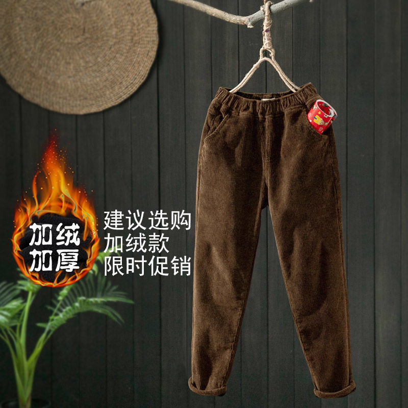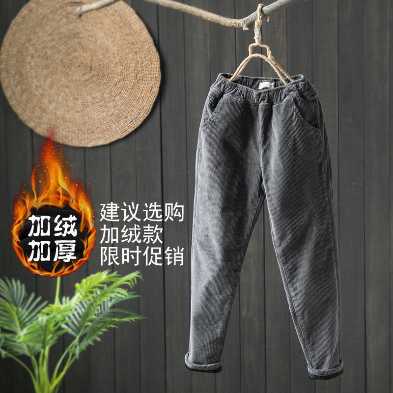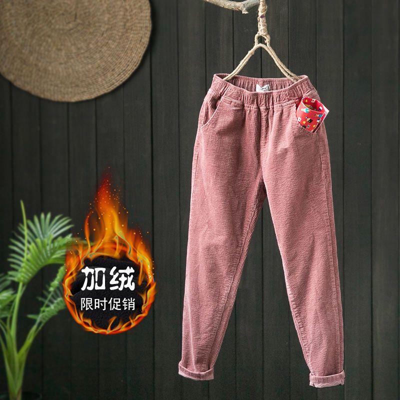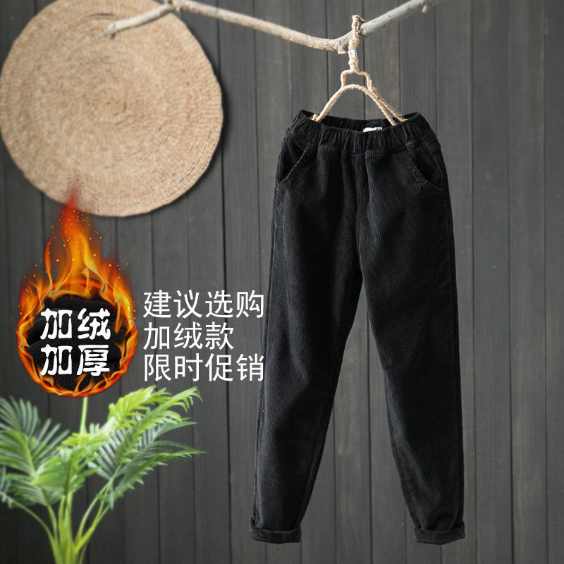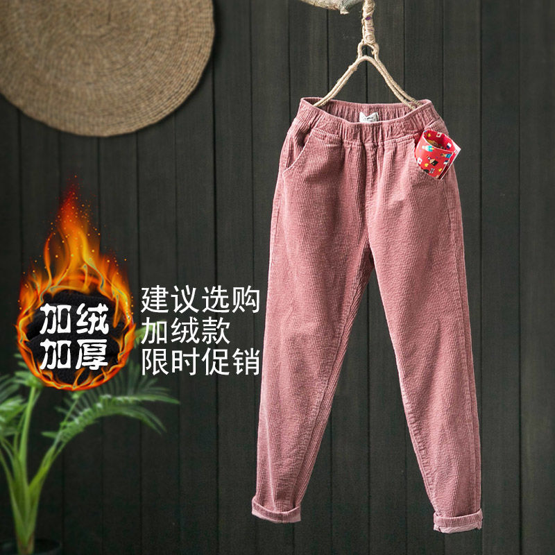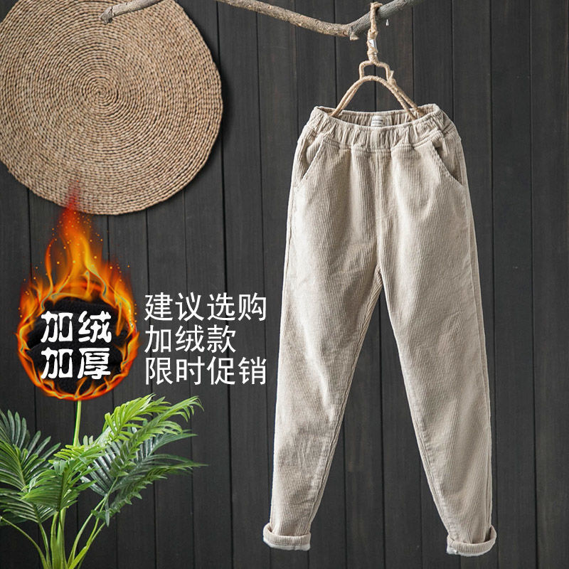 Главная страница > Вельветовые брюки женские осенне-зимние новые винтажные художественные свободные большие размеры на флисовой подкладке утолщенные Морковные повседневные шаровары