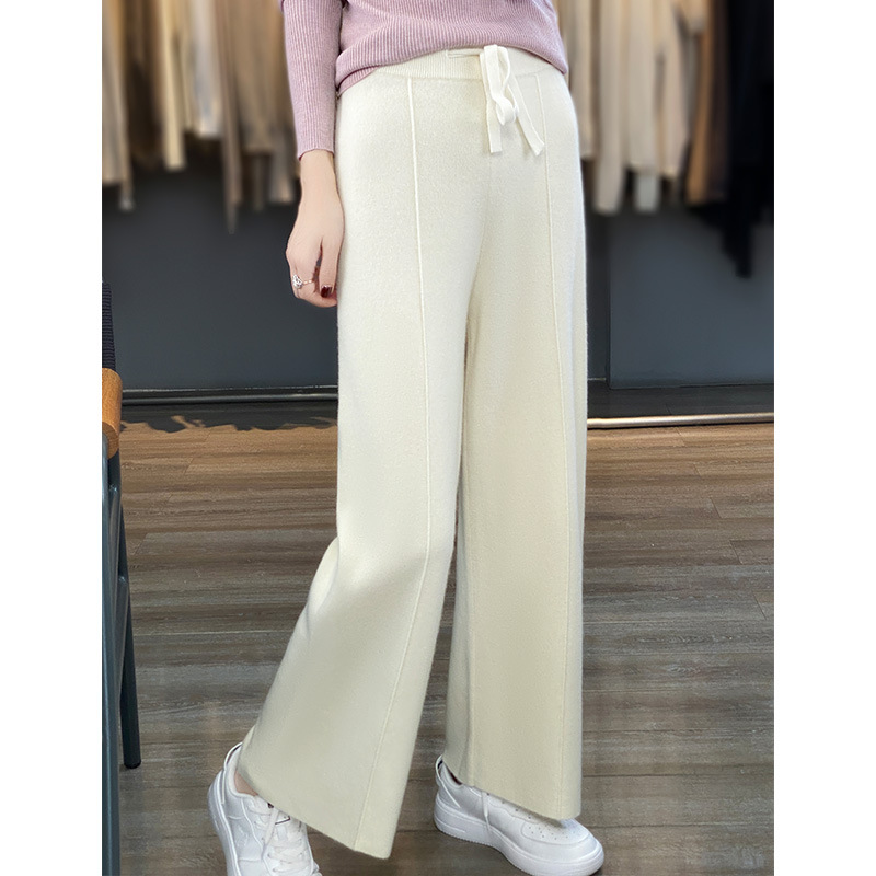 Главная страница > Шерстяные вязаные широкие брюки, женские осенне-зимние утолщенные брюки из кашемира с высокой талией и драпировкой, коричневые прямые повседневные брюки в пол