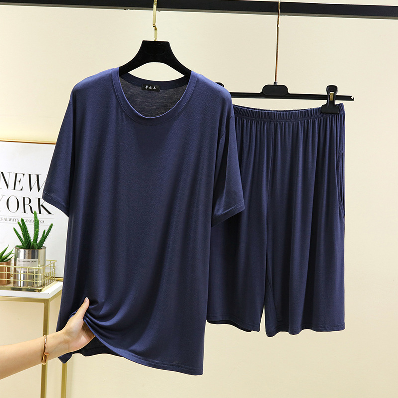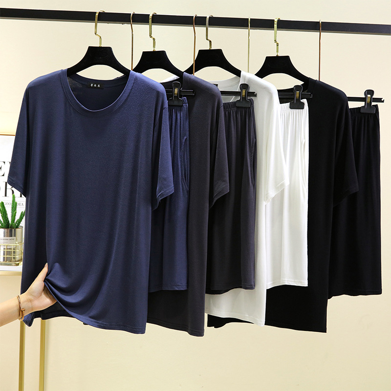 Главная страница > Мужская модальская пижама Пижама Комплект свободных тонких больших размеров Домашняя одежда с короткими рукавами шорты из двух частей Повседневное лето