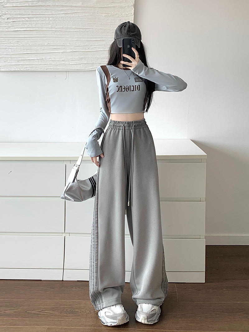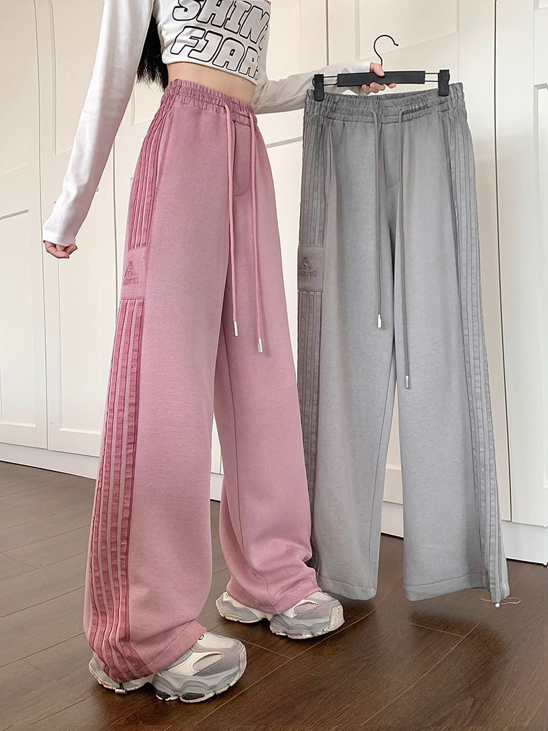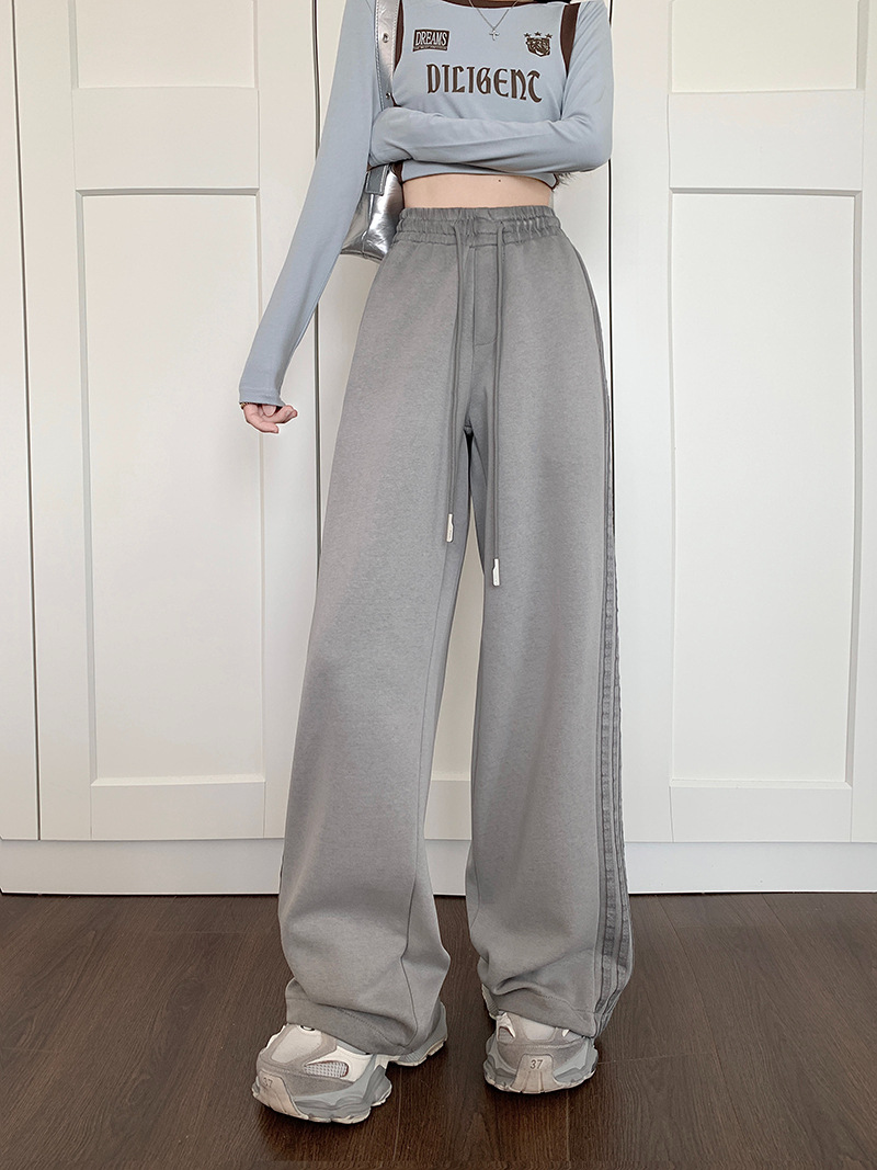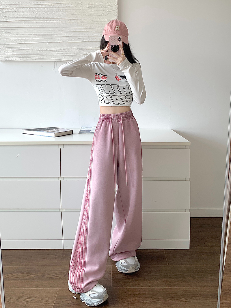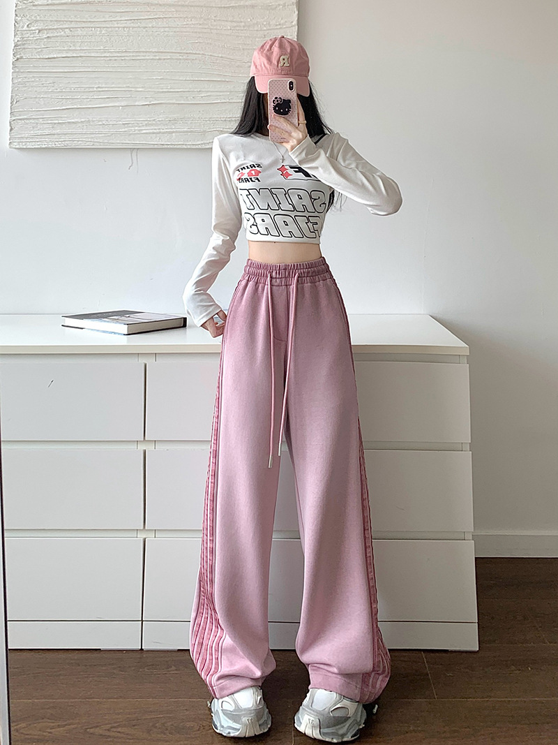 Главная страница > Винтажные высокие уличные полоски спортивные брюки женские осенние новые американские брюки свободные тонкие повседневные прямые брюки оптом