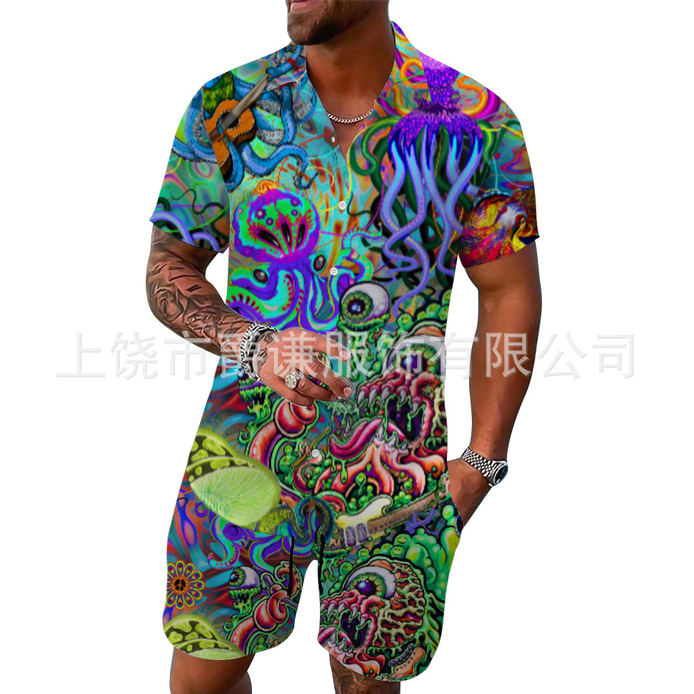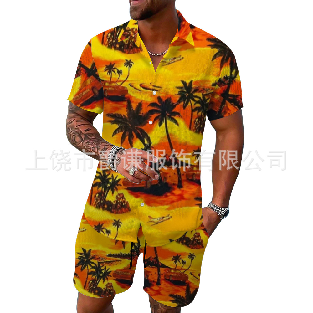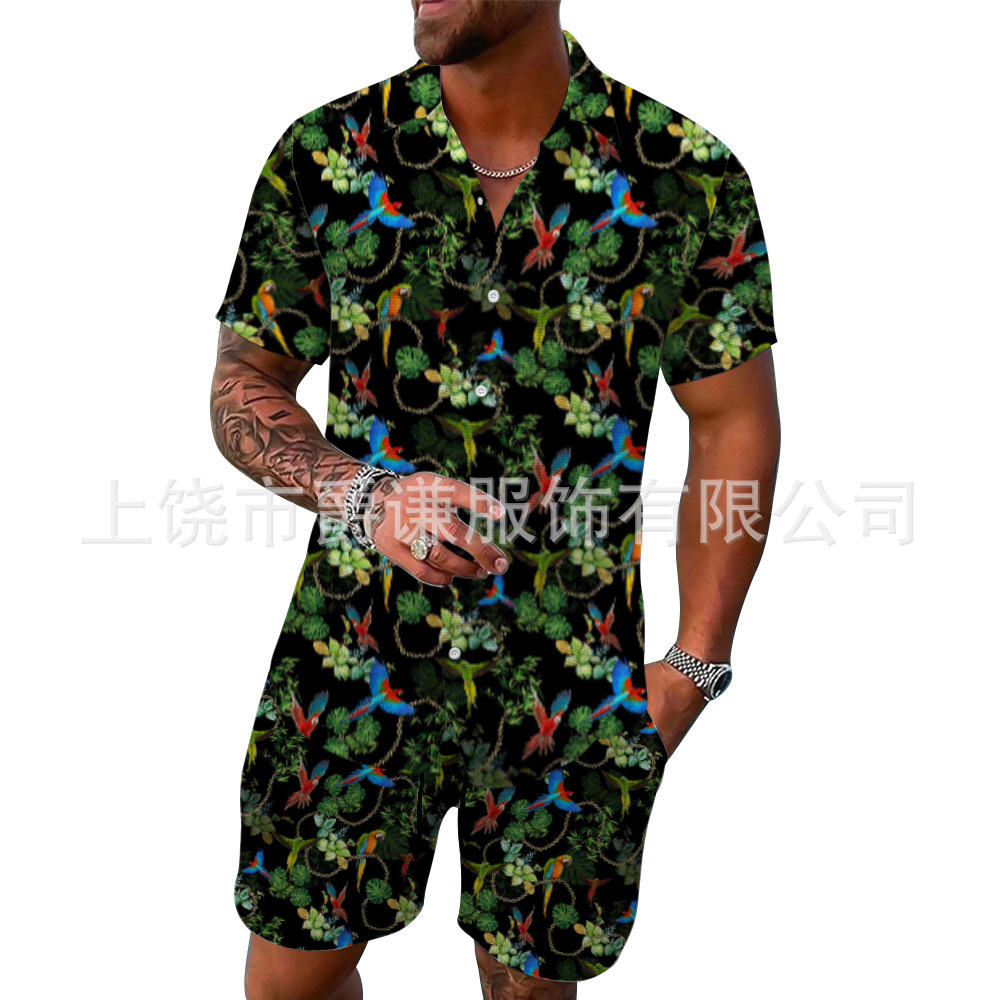 Главная страница > Трансграничная внешняя торговля Европейский код мужская рубашка наряд Гавайские 3d принты свободные повседневные пляжные штаны с короткими рукавами