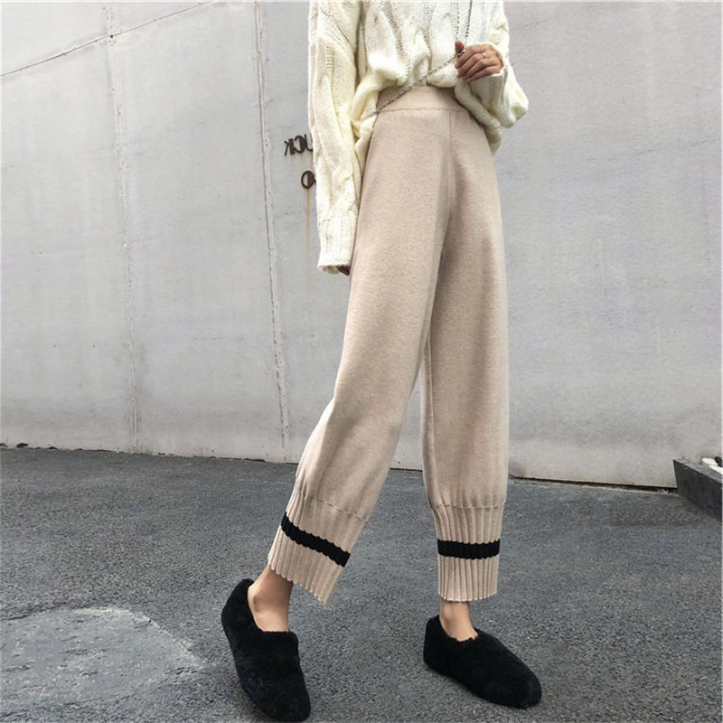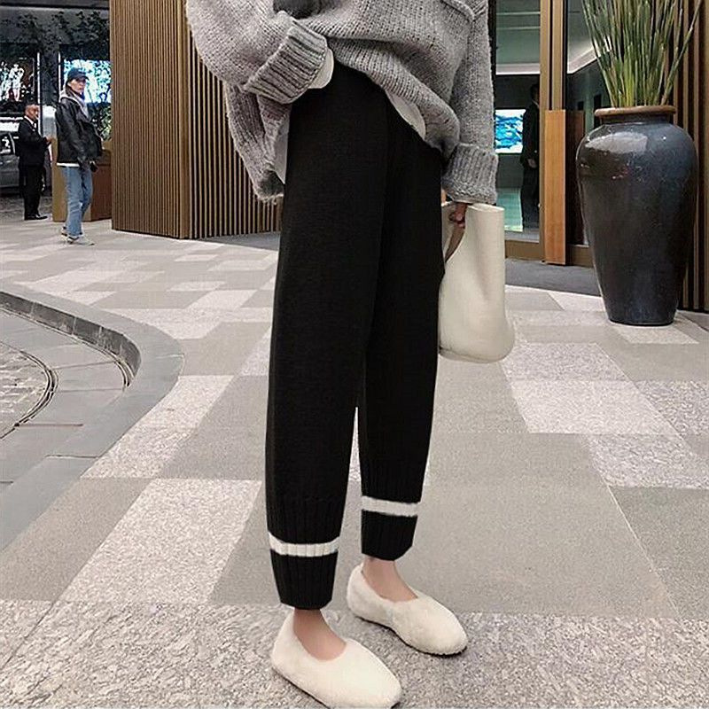 Главная страница > Весна и осень 2023 Новые вязаные широкие брюки Женские прямые свободные повседневные Морковные брюки Брюки Harlan Шерстяные брюки-карандаш