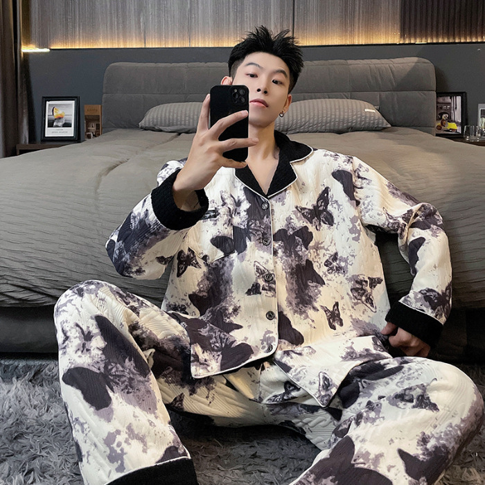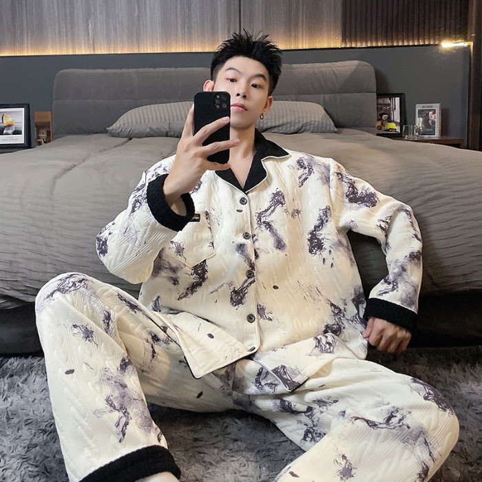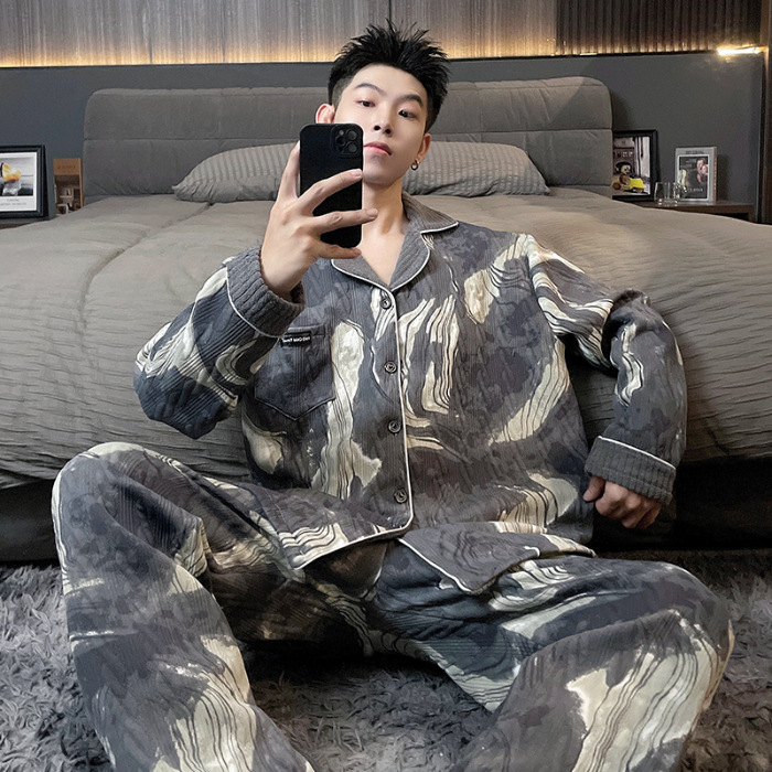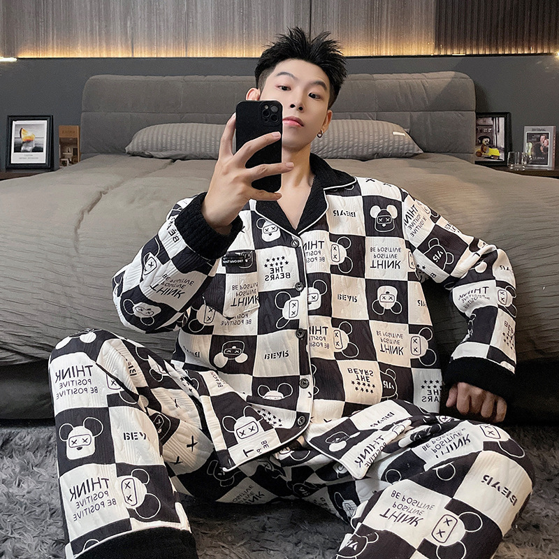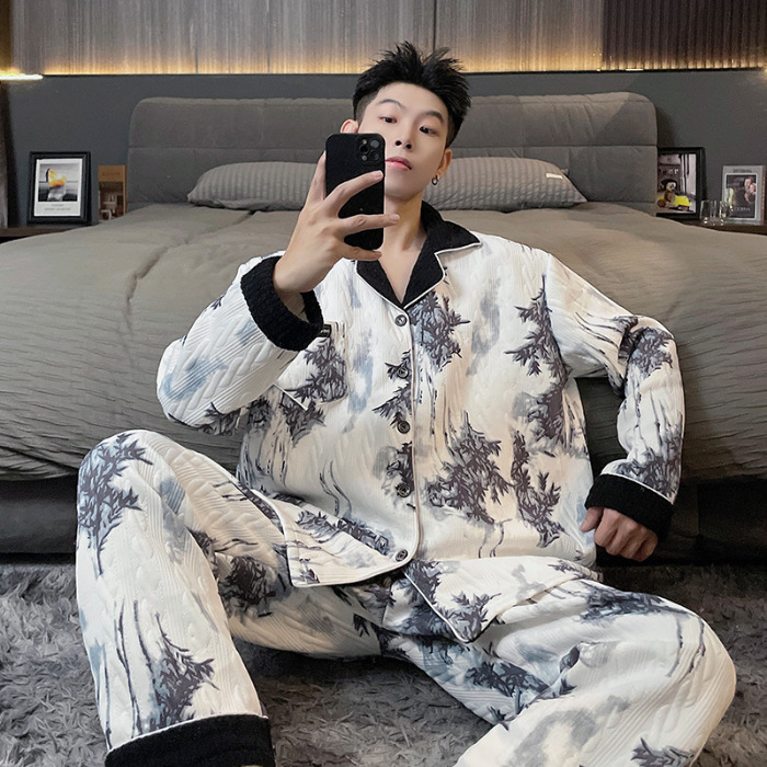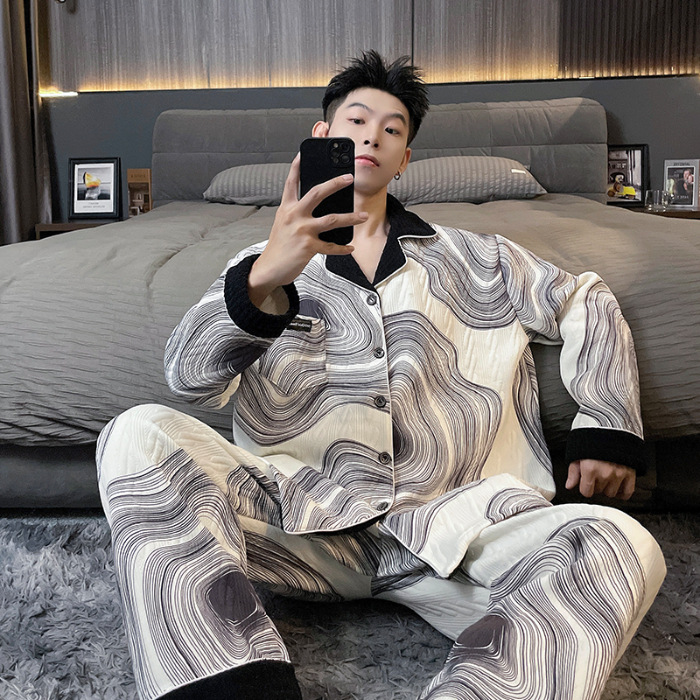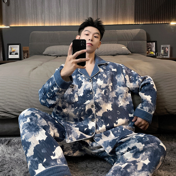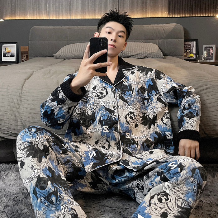 Главная страница > Воздушная хлопчатобумажная пижама для мужчин осенью и зимой утолщена и теплая передовая роскошь