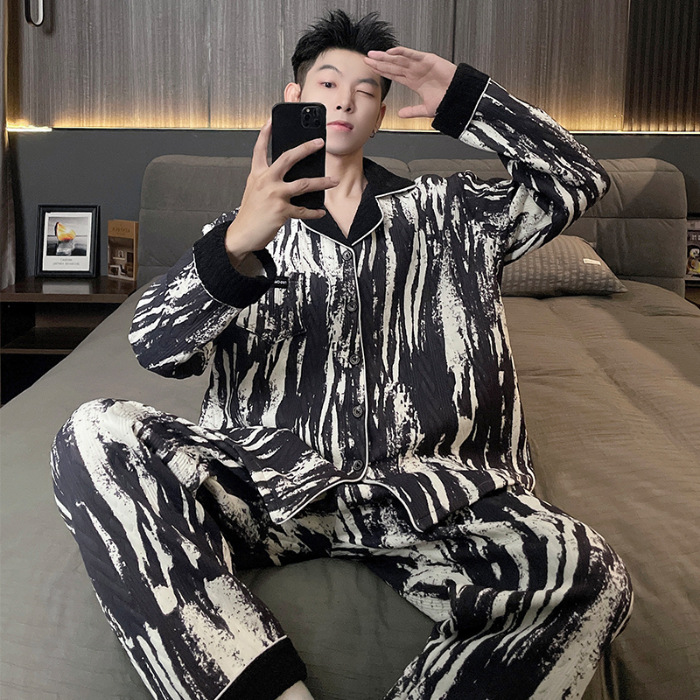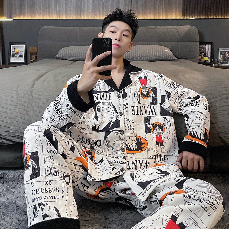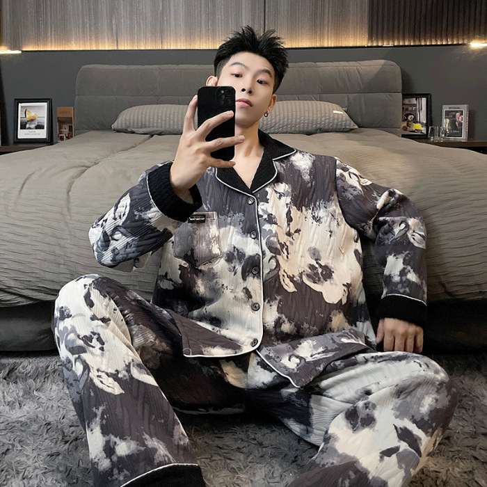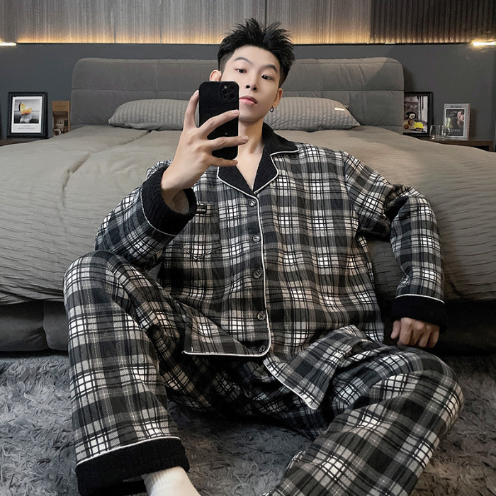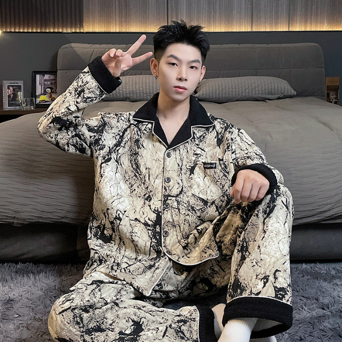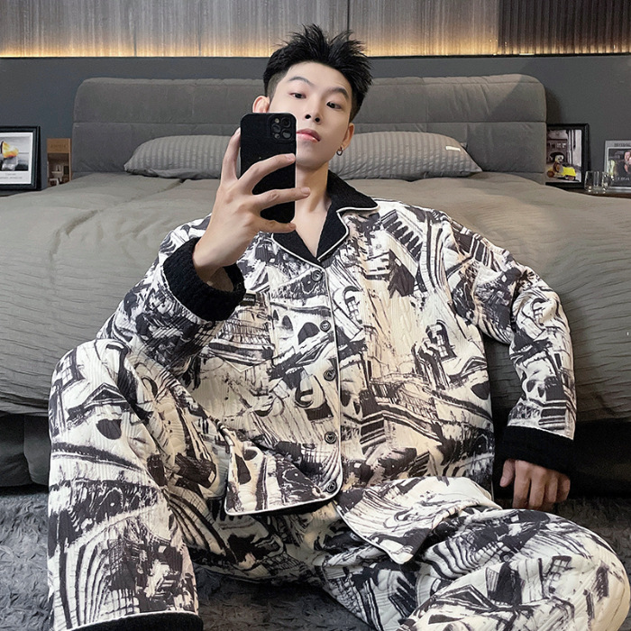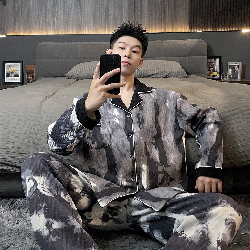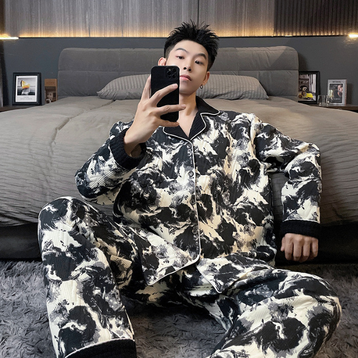 Главная страница > Воздушная хлопчатобумажная пижама для мужчин осенью и зимой утолщена и теплая передовая роскошь
