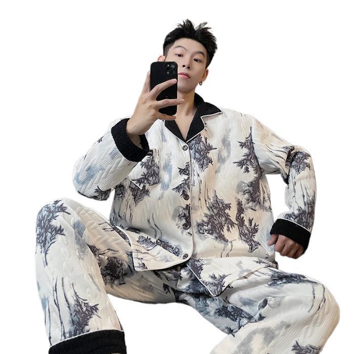 Воздушная хлопчатобумажная пижама для мужчин осенью и зимой утолщена и теплая передовая роскошь