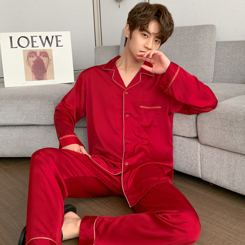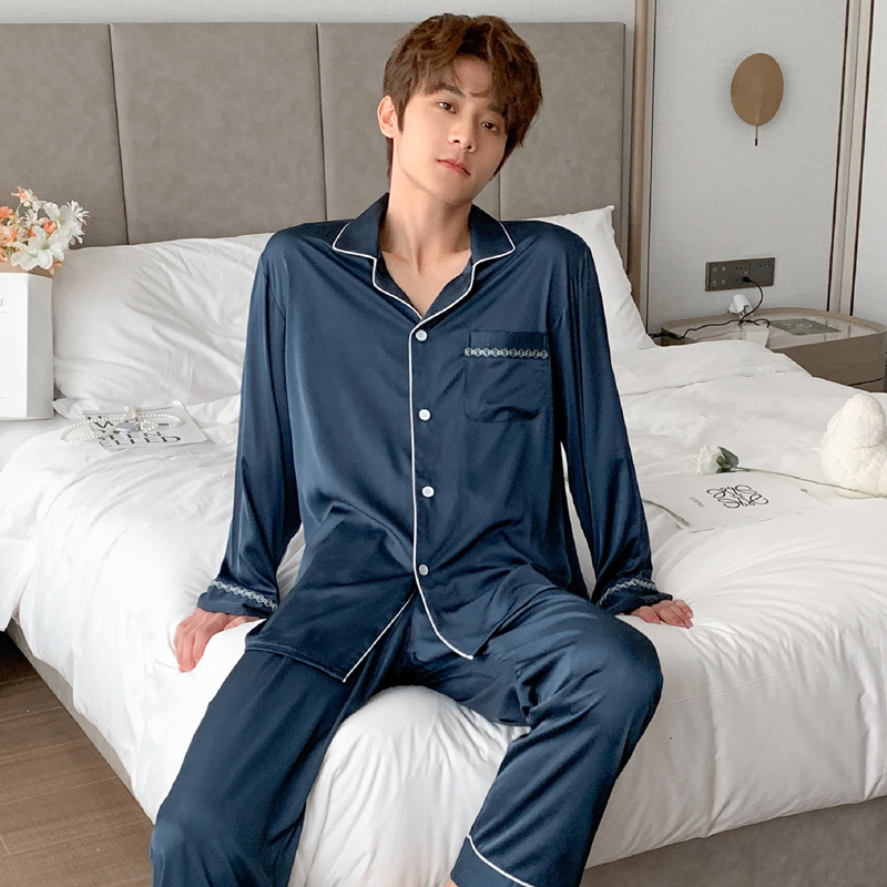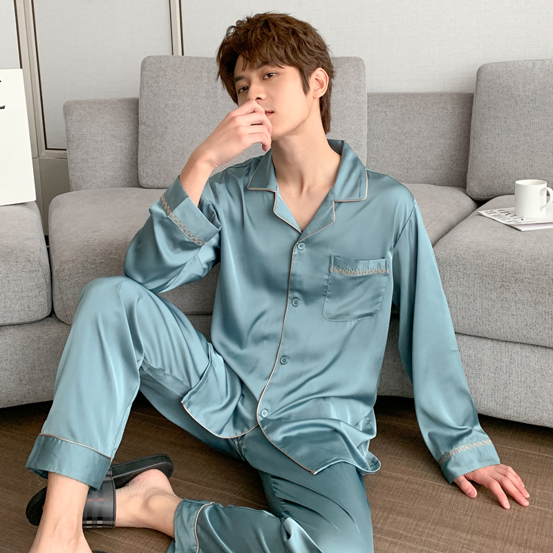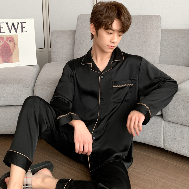 Главная страница > 22 Весенний новый мужской шелковый костюм с длинными рукавами, тонкий простой мужской однотонный ледяной шелк, домашняя одежда из двух предметов