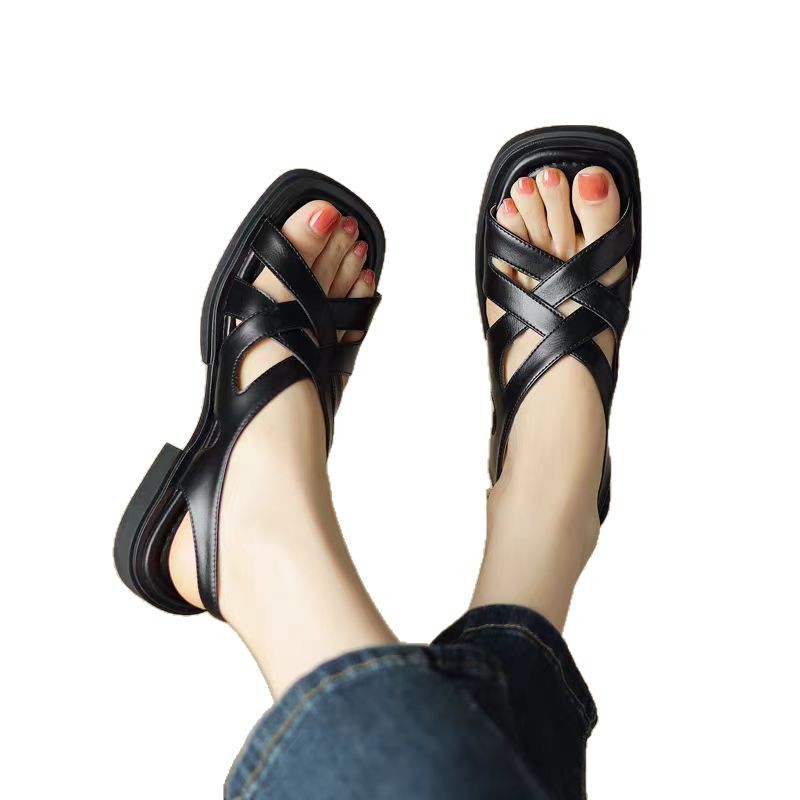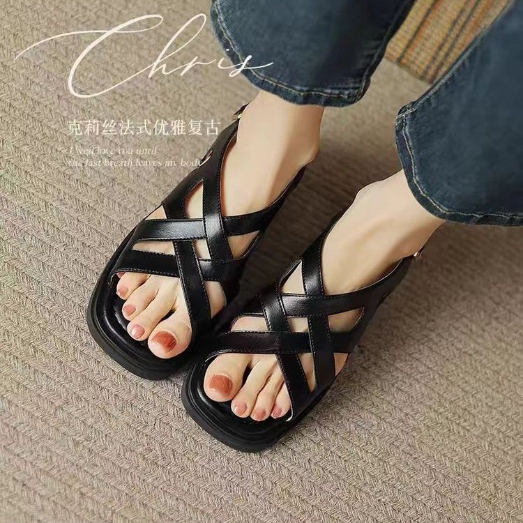 Главная страница > 2025 новые римские сандалии на высоком каблуке на высоком каблуке женские толстые каблуки летние черные простые повседневные сандалии с квадратной головой