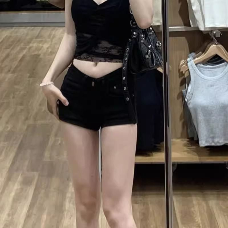 Главная страница > Черные облегающие джинсовые супершорты для женщин, лето 2025, новинка для горячих девушек с низкой талией, универсальная верхняя одежда для похудения, шорты
