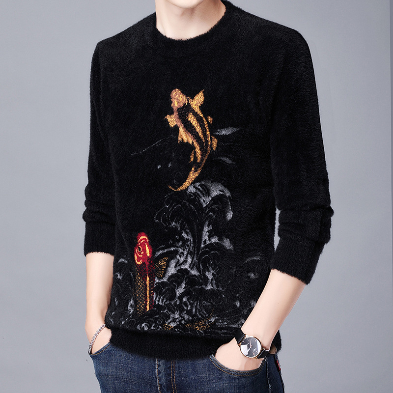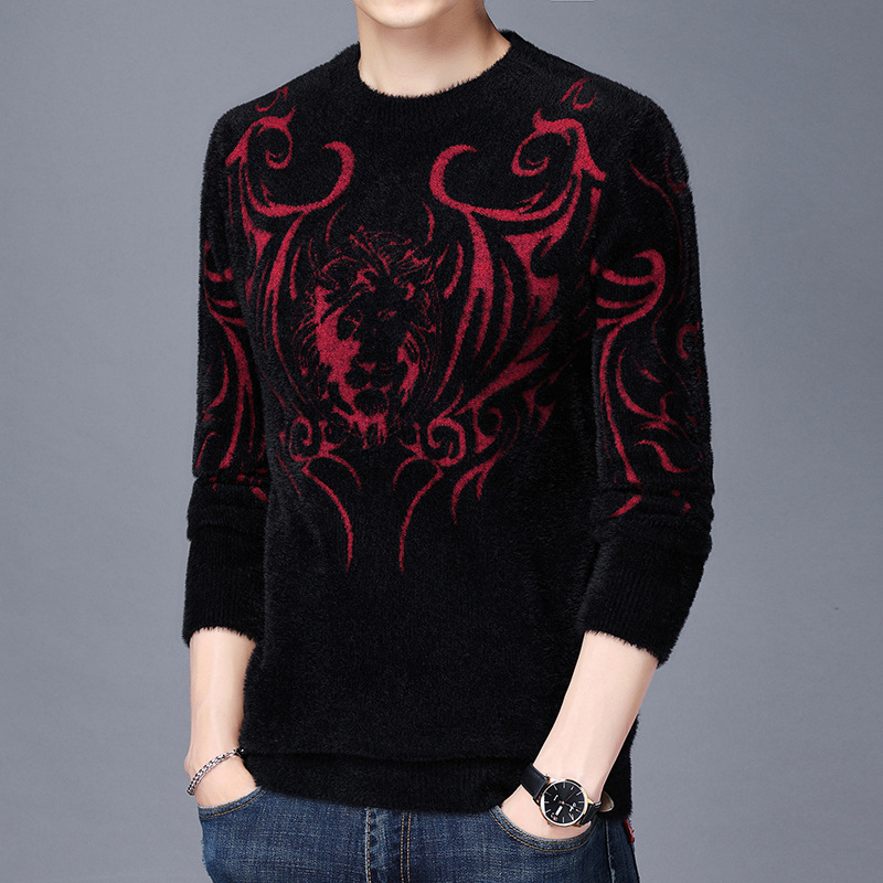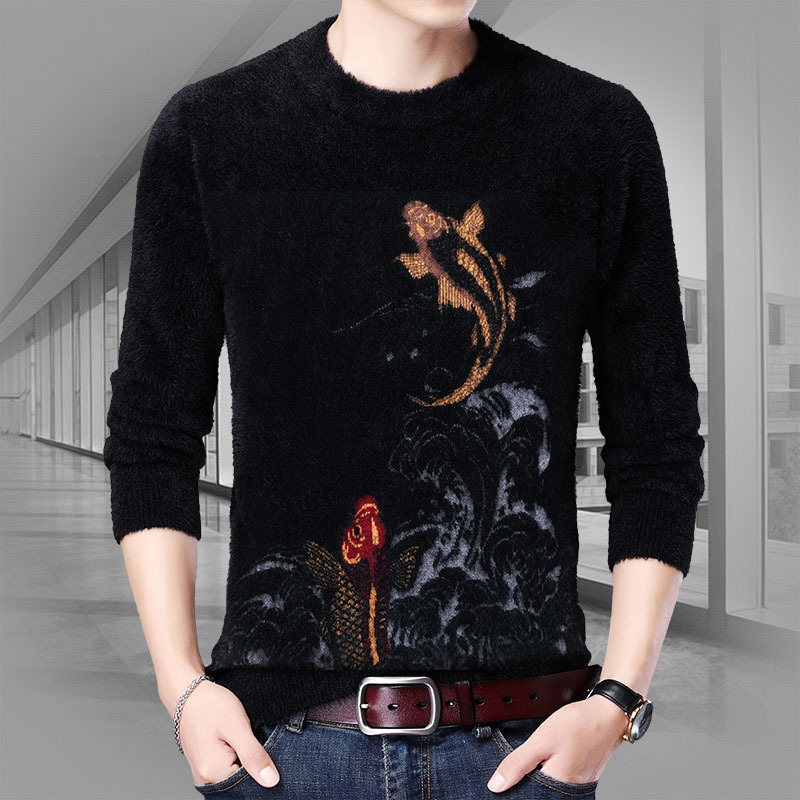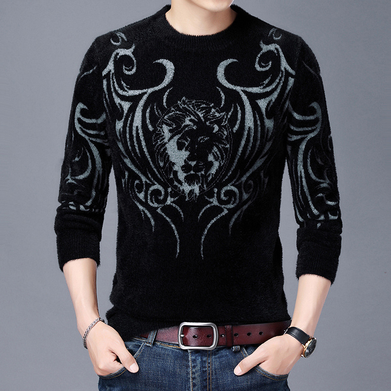 Главная страница > Зимний свитер из искусственной норки, Мужская нижняя рубашка, модный тренд для молодых и средних лет, зимний жаккардовый свитер, поддержка поколения волос