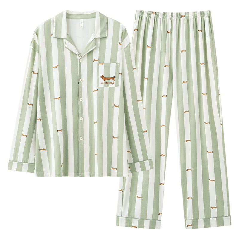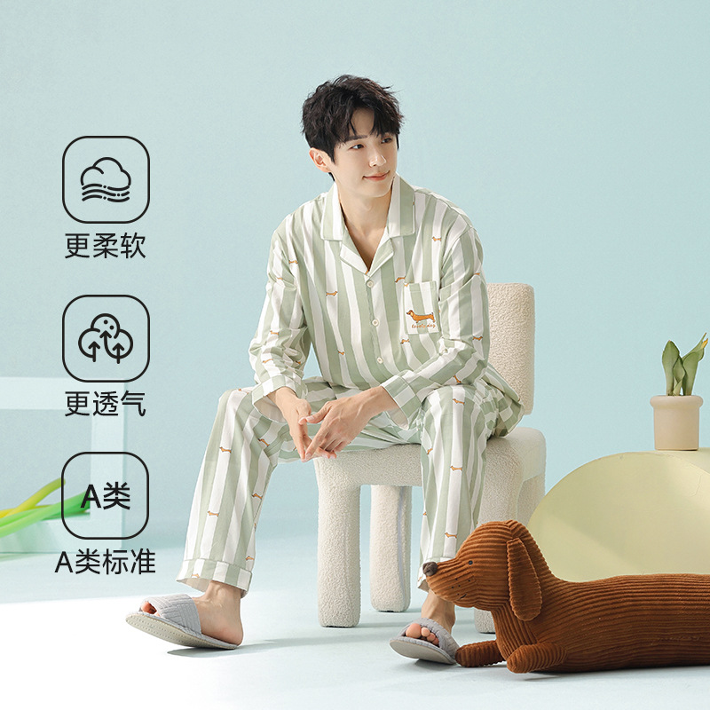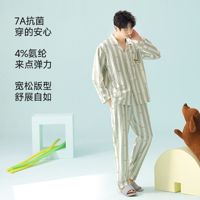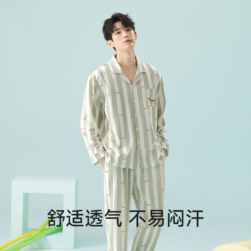 Главная страница > [Антибактериальный хлопок Синьцзян] Весенняя и осенняя хлопковая пижама мужской длинный рукав кардиган в полоску повседневный мужской костюм