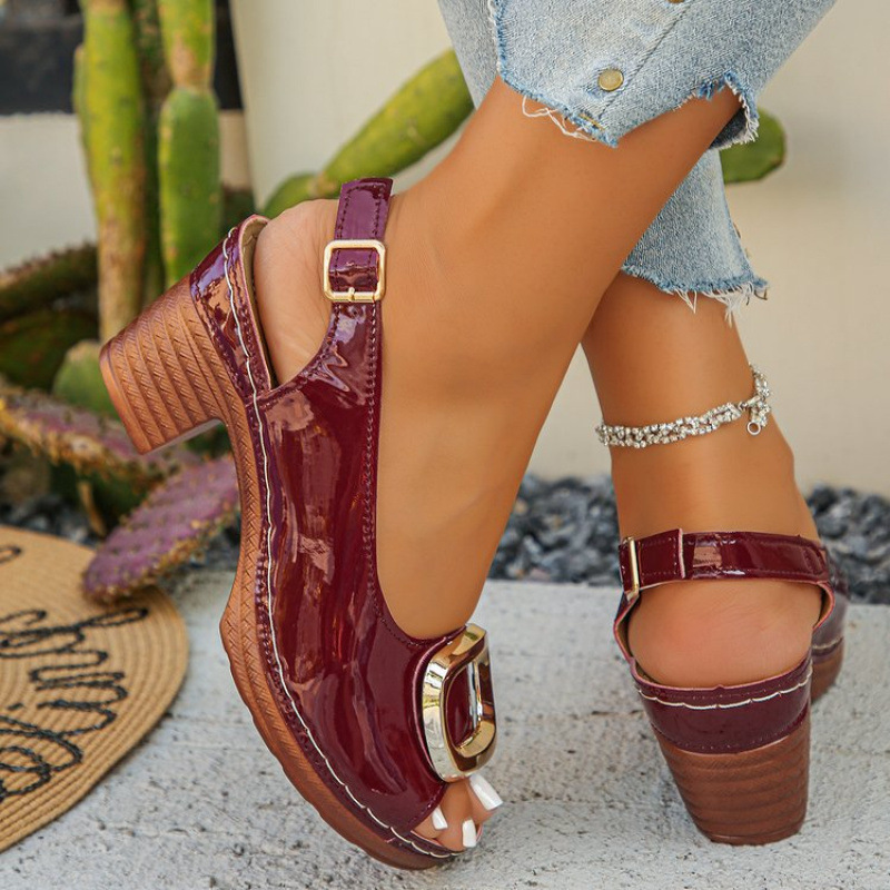 Главная страница > Женские сандалии большого размера для внешней торговли, новинка лета 2025 года, квадратная пряжка с открытым носком, массивный каблук, модная и удобная женская обувь с пряжкой оптом.
