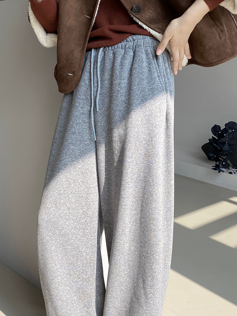 Главная страница > Цзян слева в два цвета с высокой талией, брюки для ног, женские осенью и зимой, толстые, прямые, повседневные шнурки, широкие ножки 1258