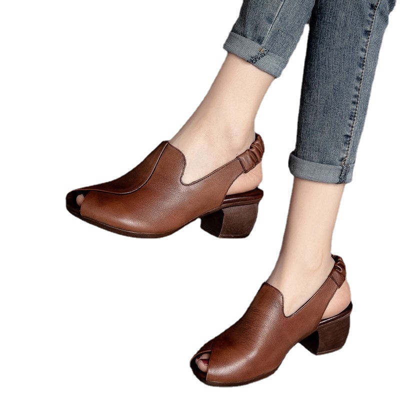 Главная страница > 2023 летние новые ретро женские сандалии для мам среднего возраста на массивном каблуке, римские сандалии с открытым носком и эластичным ремешком для женщин