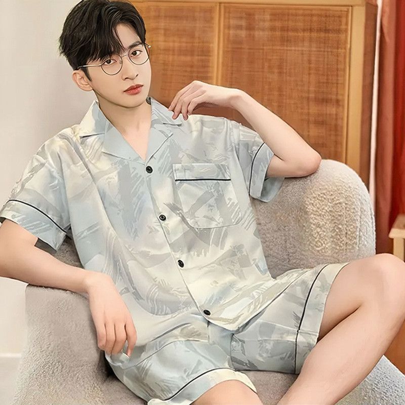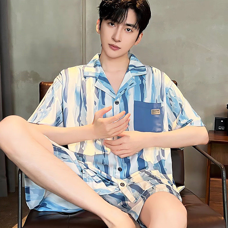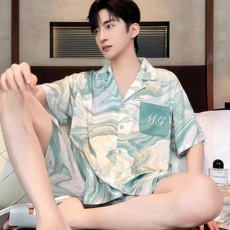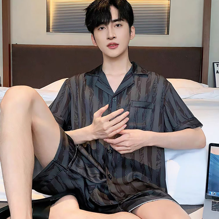 Главная страница > 男士睡衣男夏季冰丝新款短袖薄款轻奢青年帅气睡衣夏天家居服套装