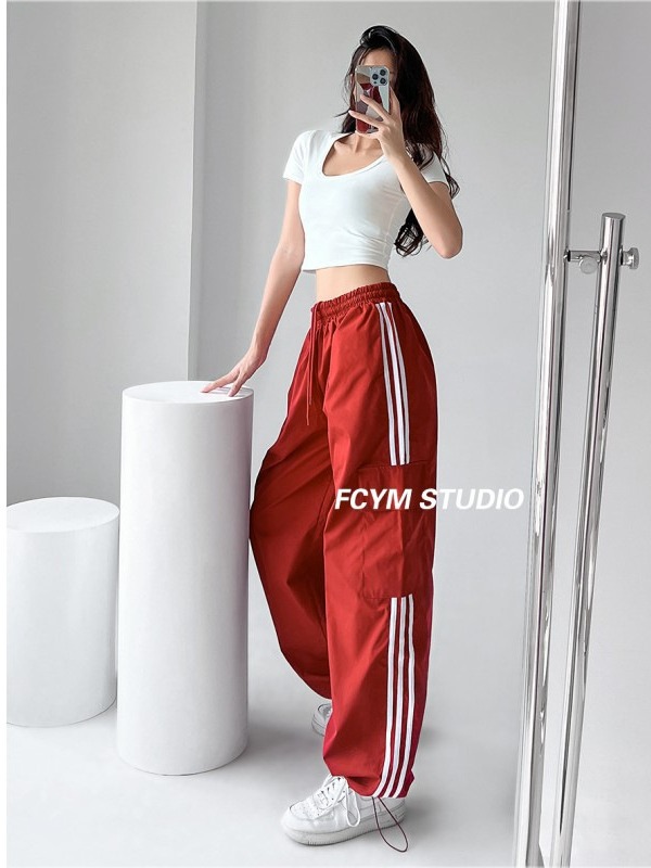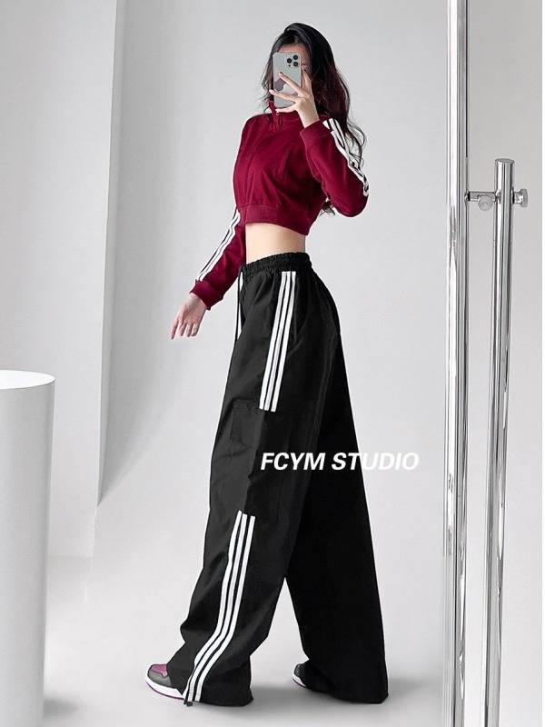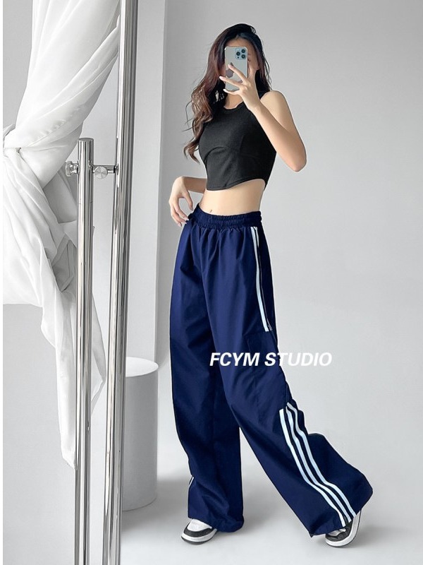 Главная страница > Американский Ретро трехполосный уличный походный комбинезон, женская весна и осень, Новые широкие спортивные штаны, брюки для мытья полов с высокой талией