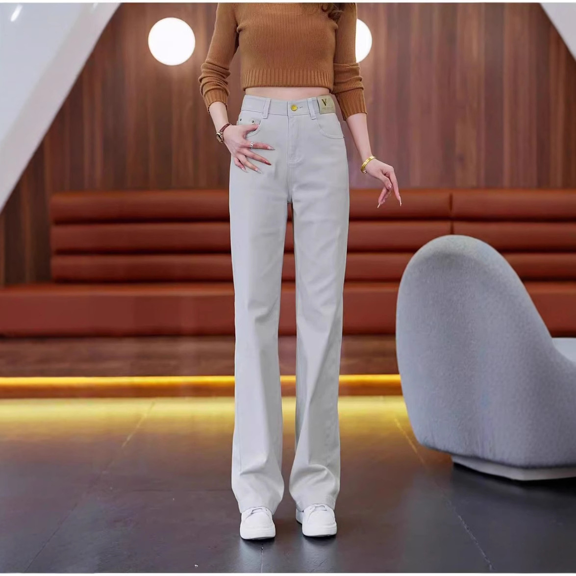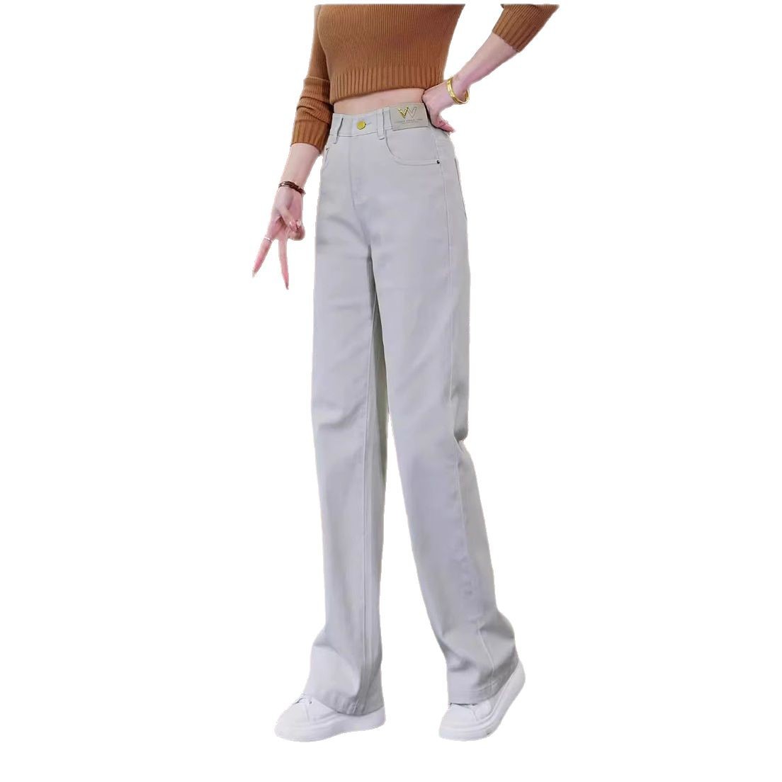 Главная страница > Женские узкие прямые джинсы весна-лето, новая мода, свободные утягивающие широкие брюки с высокой талией, универсальные повседневные длинные брюки