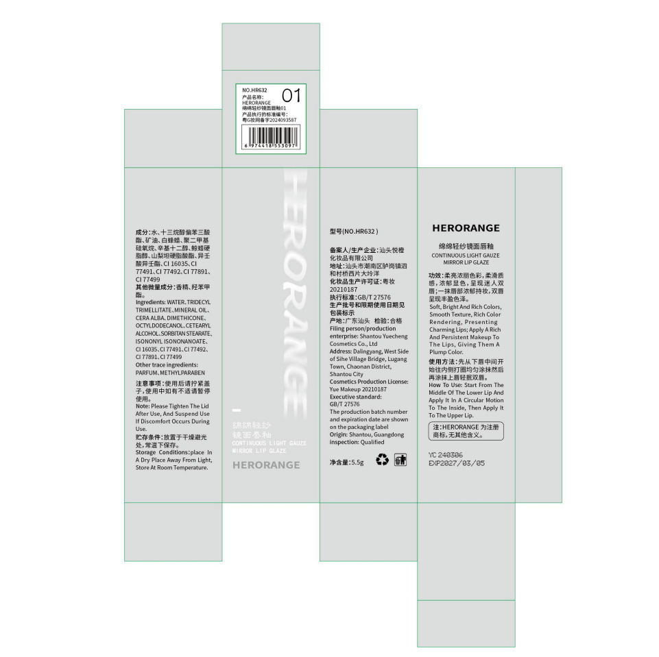 HERORANGE ~ Мягкая легкая пряжа зеркальная глазурь для губ