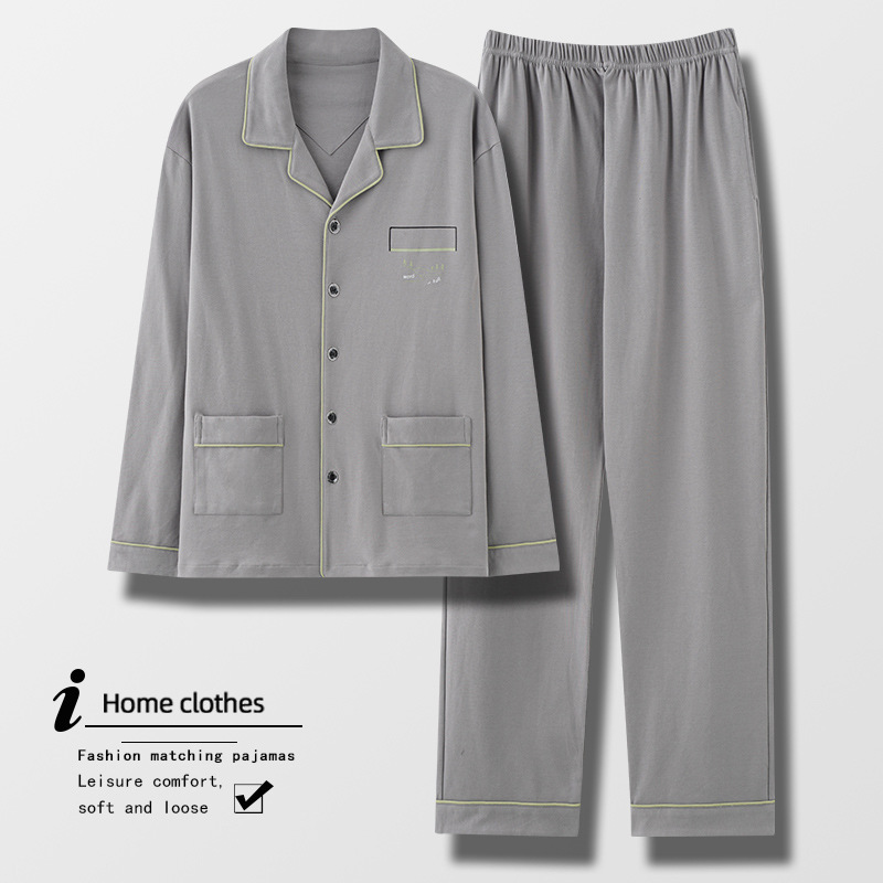 Пижама мужской большой размер осенний и зимний хлопок длинные рукава брюки домашние костюмы толстый жир плюс жир плюс 300 кг набор
