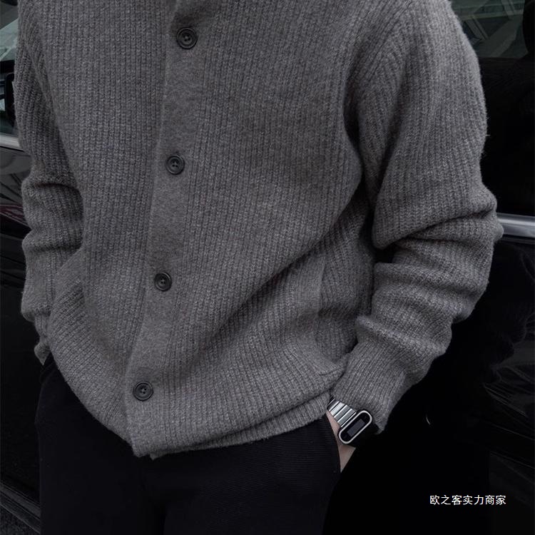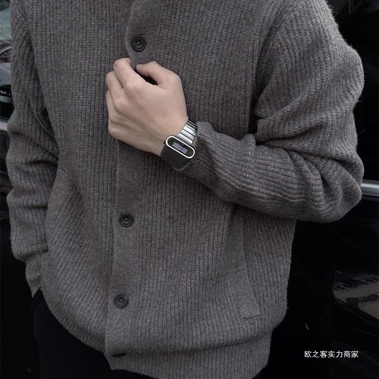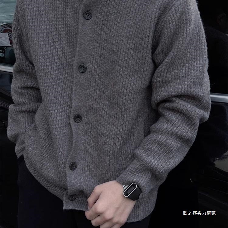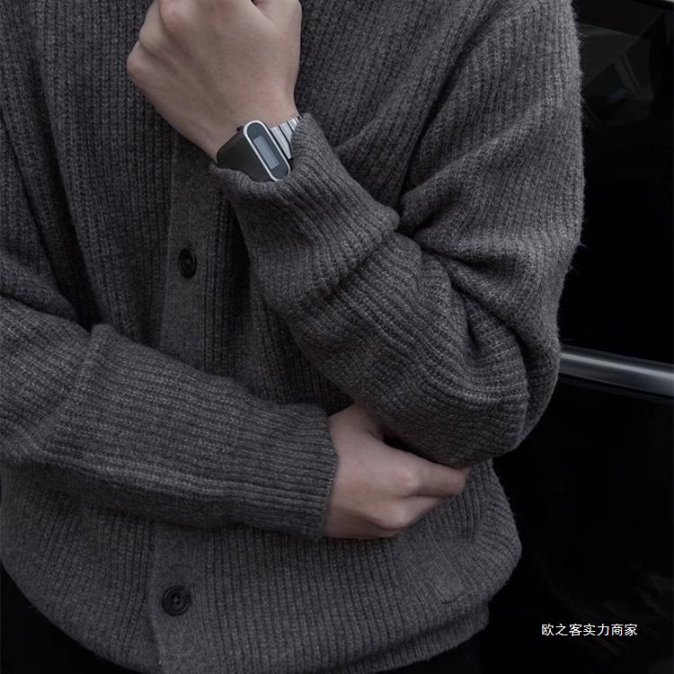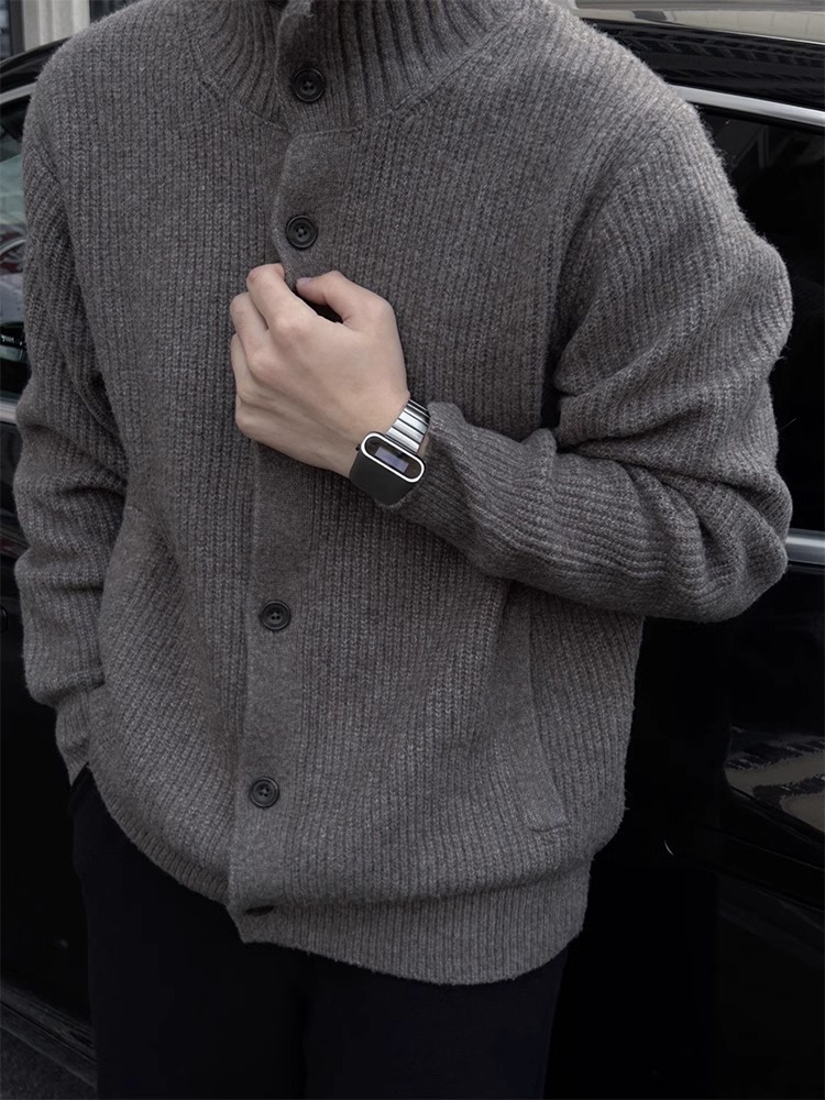 Главная страница > Спелый и стабильный мужской вязаный кардиган с высоким воротником для осенней одежды, свободный свитер, высококачественный темно-серый топ.