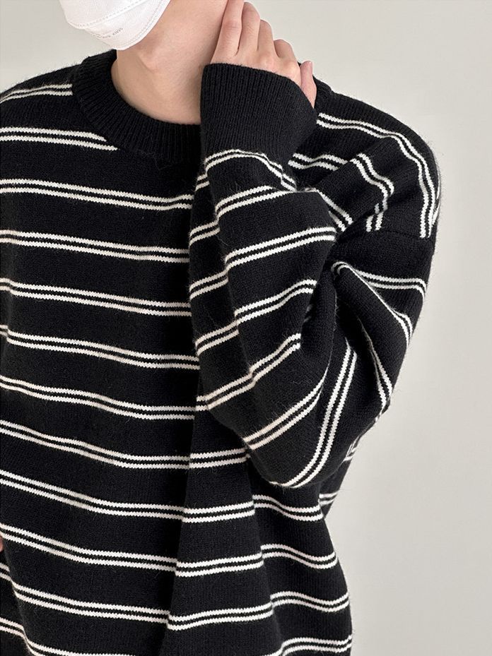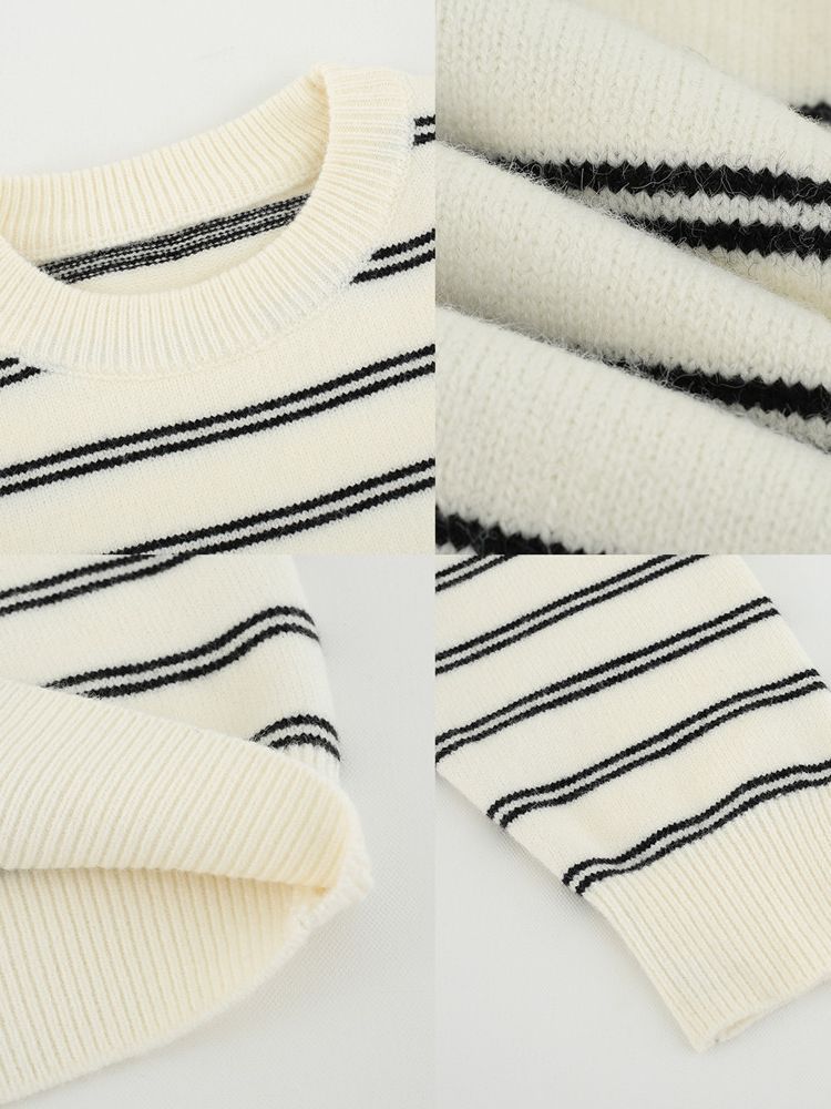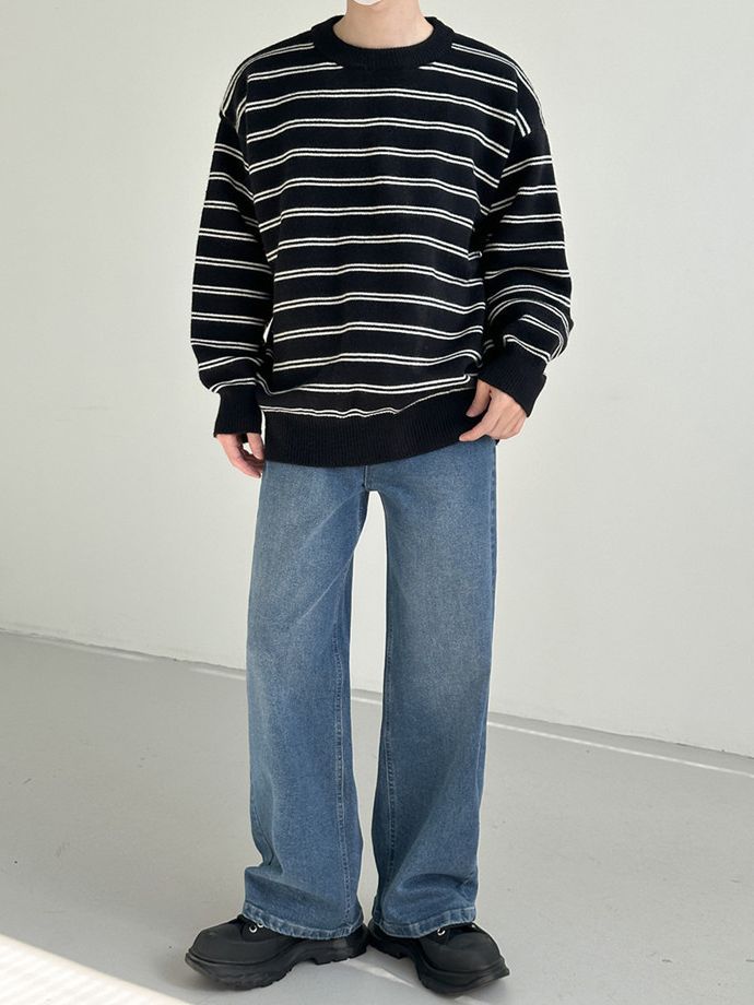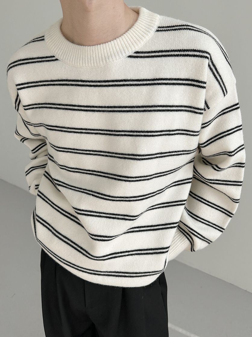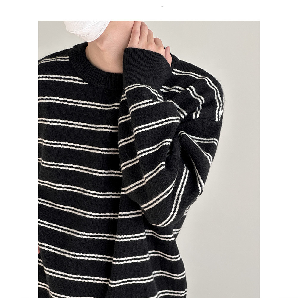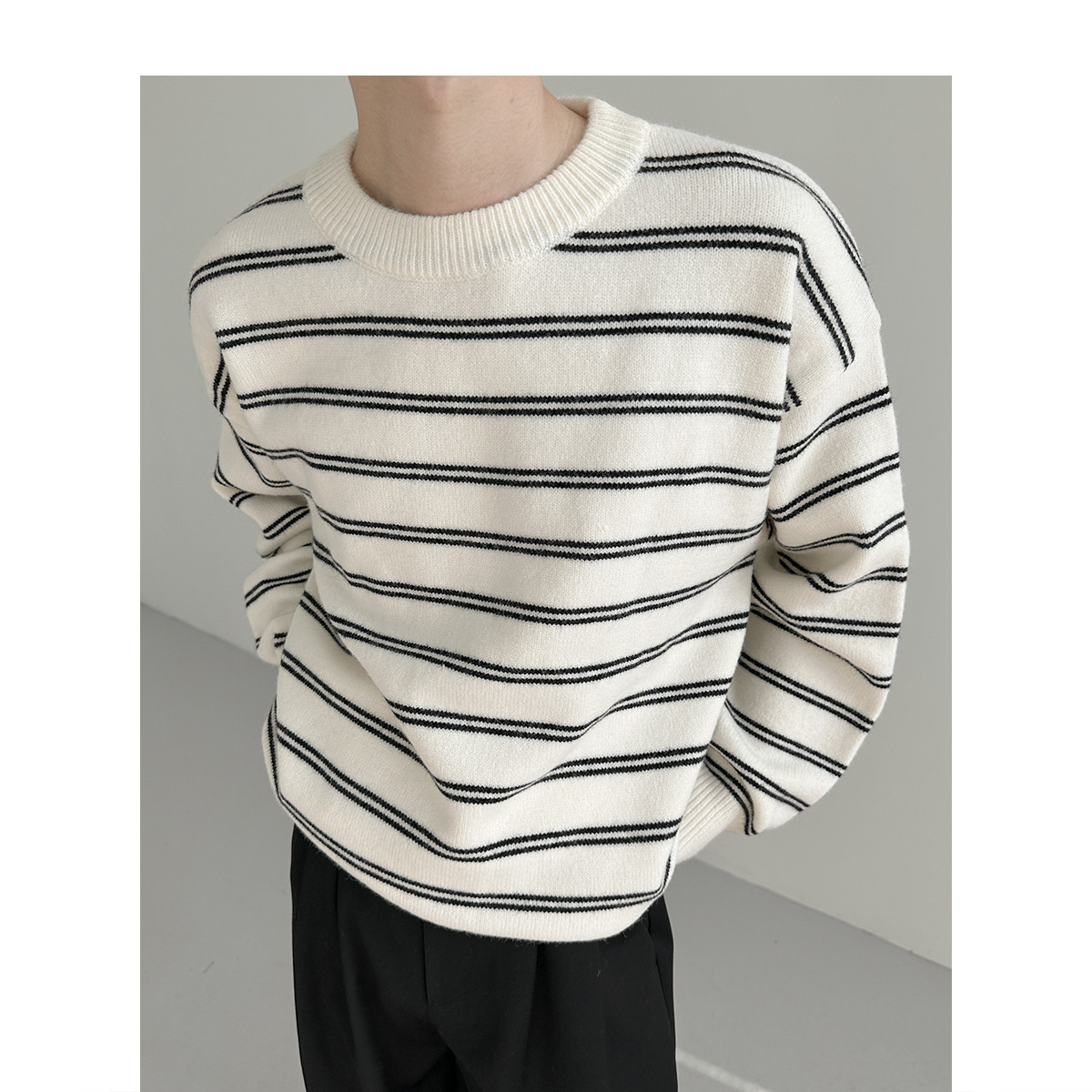 Главная страница > Базовый Универсальный свитер в полоску в Корейском стиле, Свободная трикотажная рубашка для мальчиков с круглым вырезом, повседневный универсальный модный топ