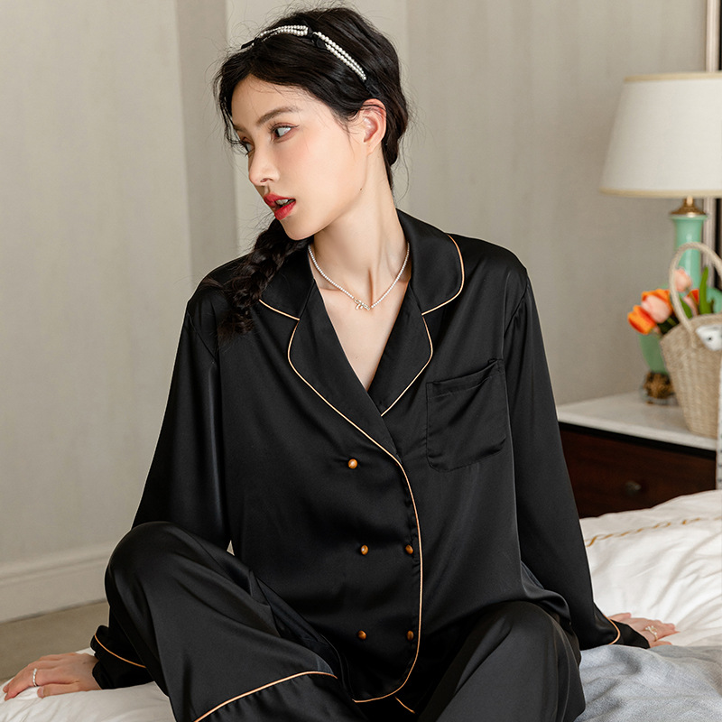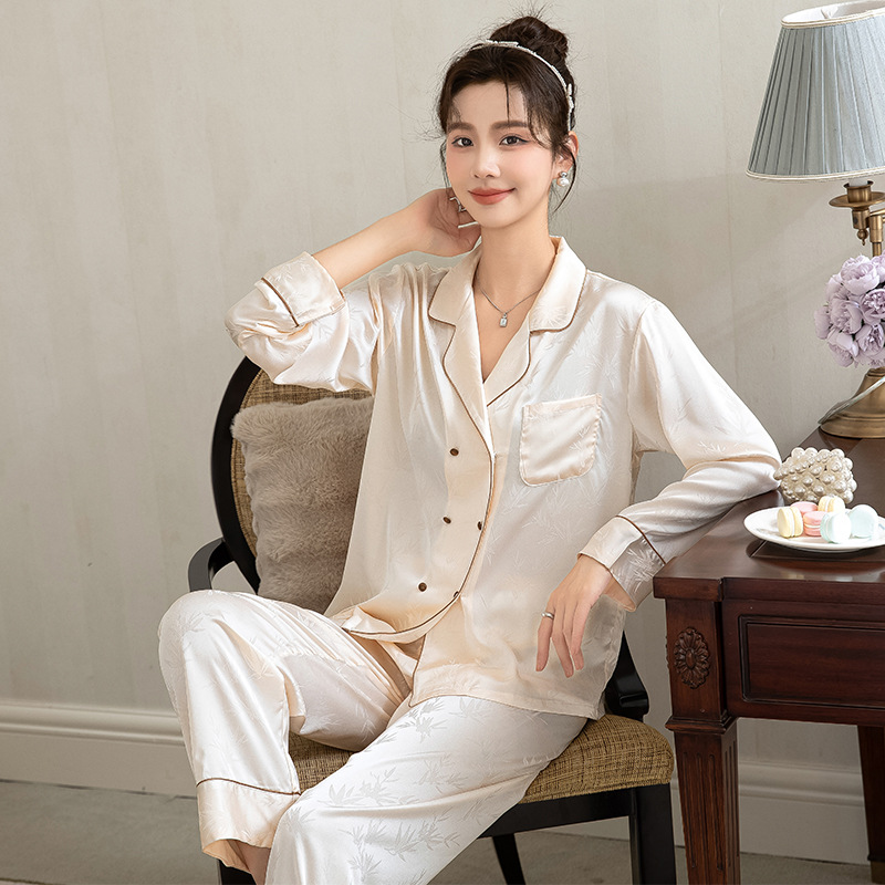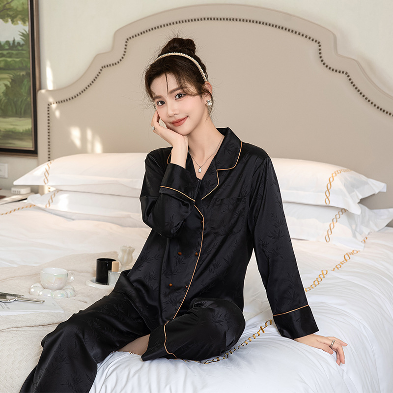 Главная страница > Двубортный тонкий ледяной шелк новый китайский стиль пижамы женская весна и осень с длинными рукавами бамбуковые листья жаккардовый шелк домашняя одежда летом