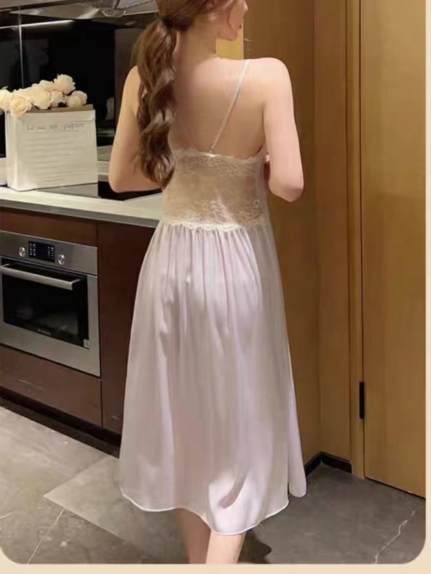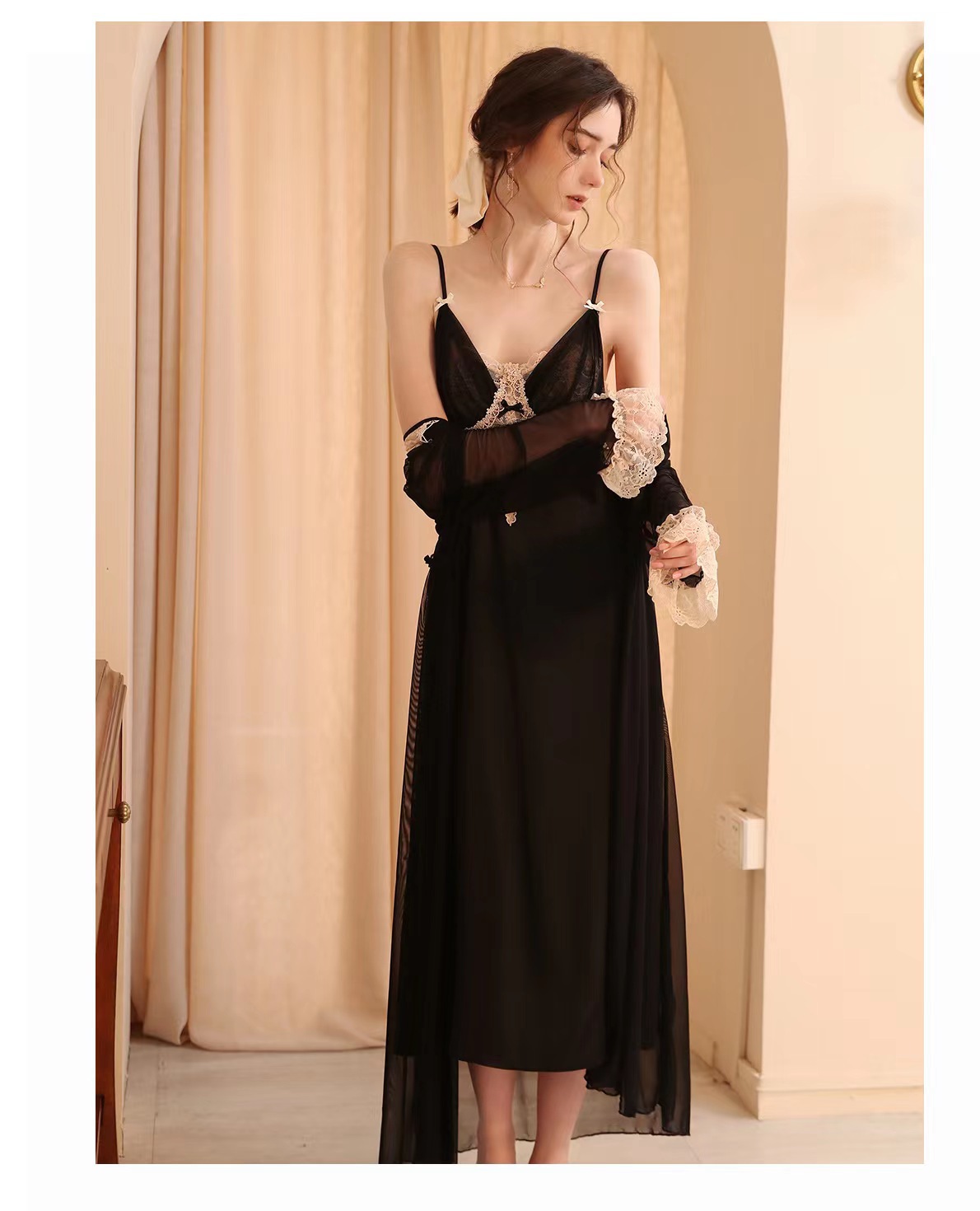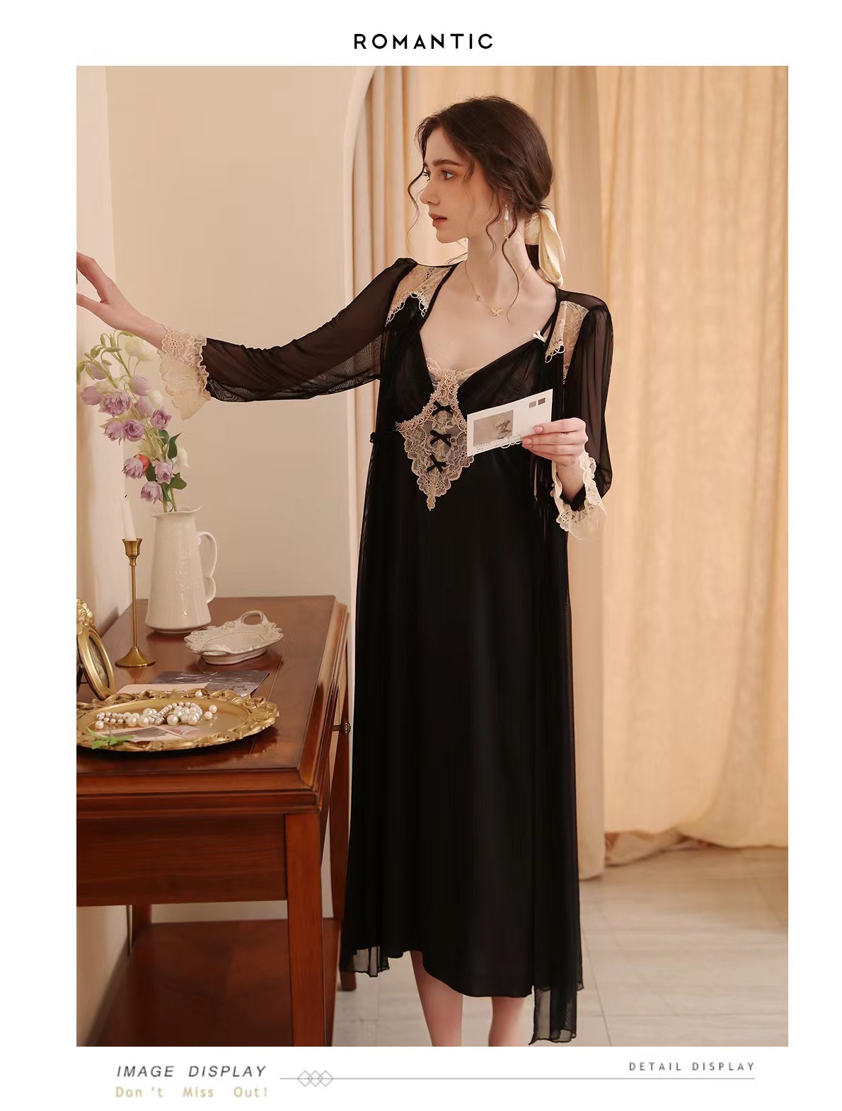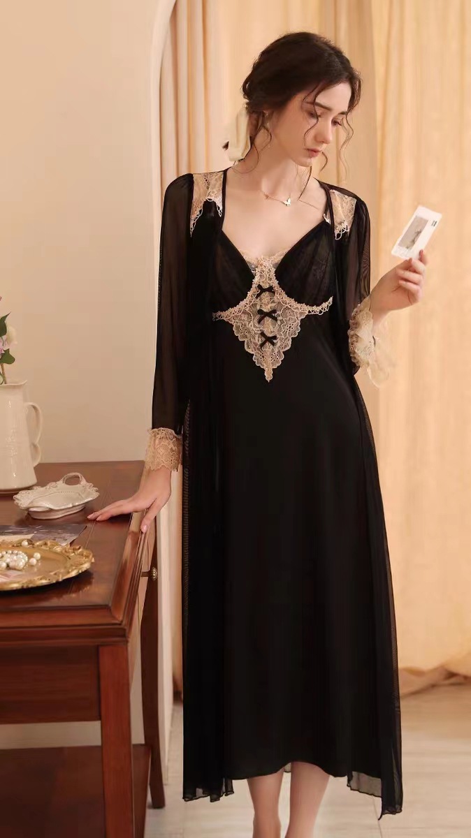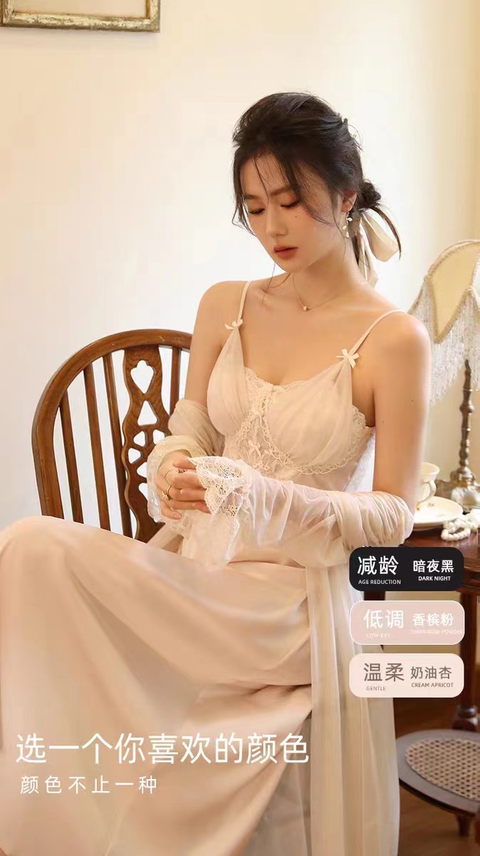 Главная страница > Ночная рубашка во французском стиле 3203, Женская Высококачественная рубашка, комплект из двух предметов, пижама из ледяного шелка, сексуальное утреннее платье, длинная домашняя одежда