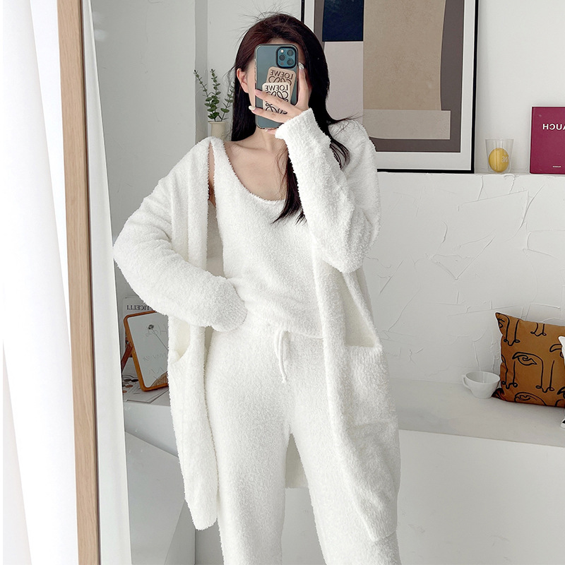 Главная страница > INS Мягкая Пижама Женский осенне-зимний комплект из трех предметов Теплый утолщенный кардиган Шерстяная вязаная Домашняя одежда Милый японский стиль