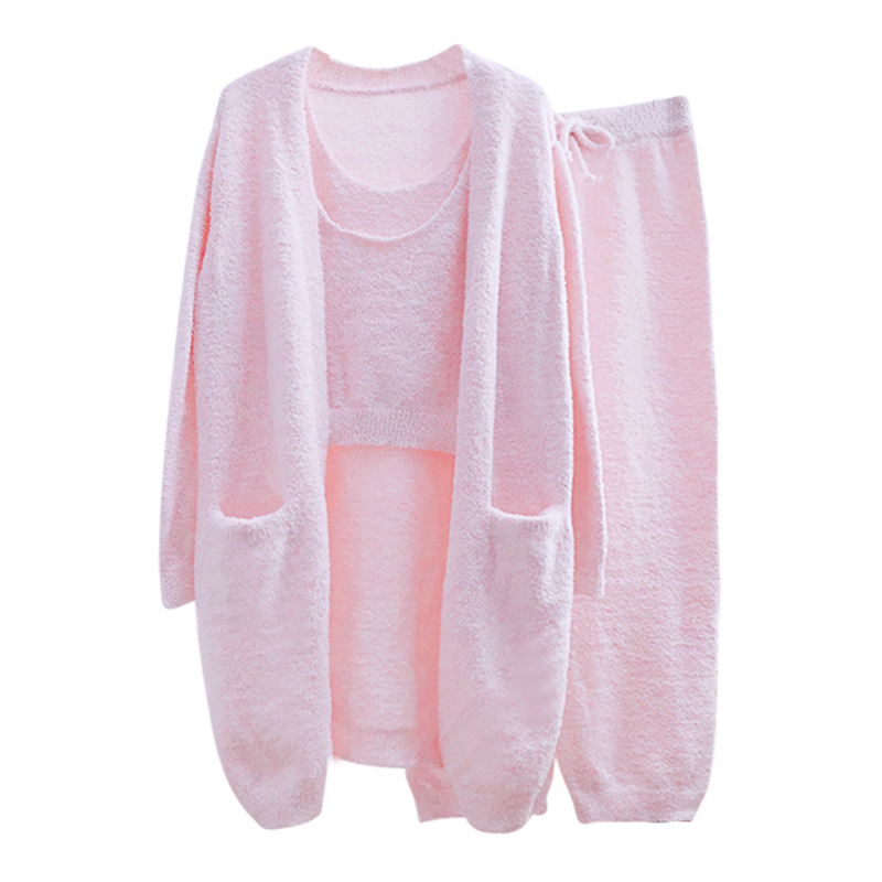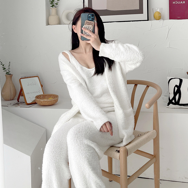 INS Мягкая Пижама Женский осенне-зимний комплект из трех предметов Теплый утолщенный кардиган Шерстяная вязаная Домашняя одежда Милый японский стиль