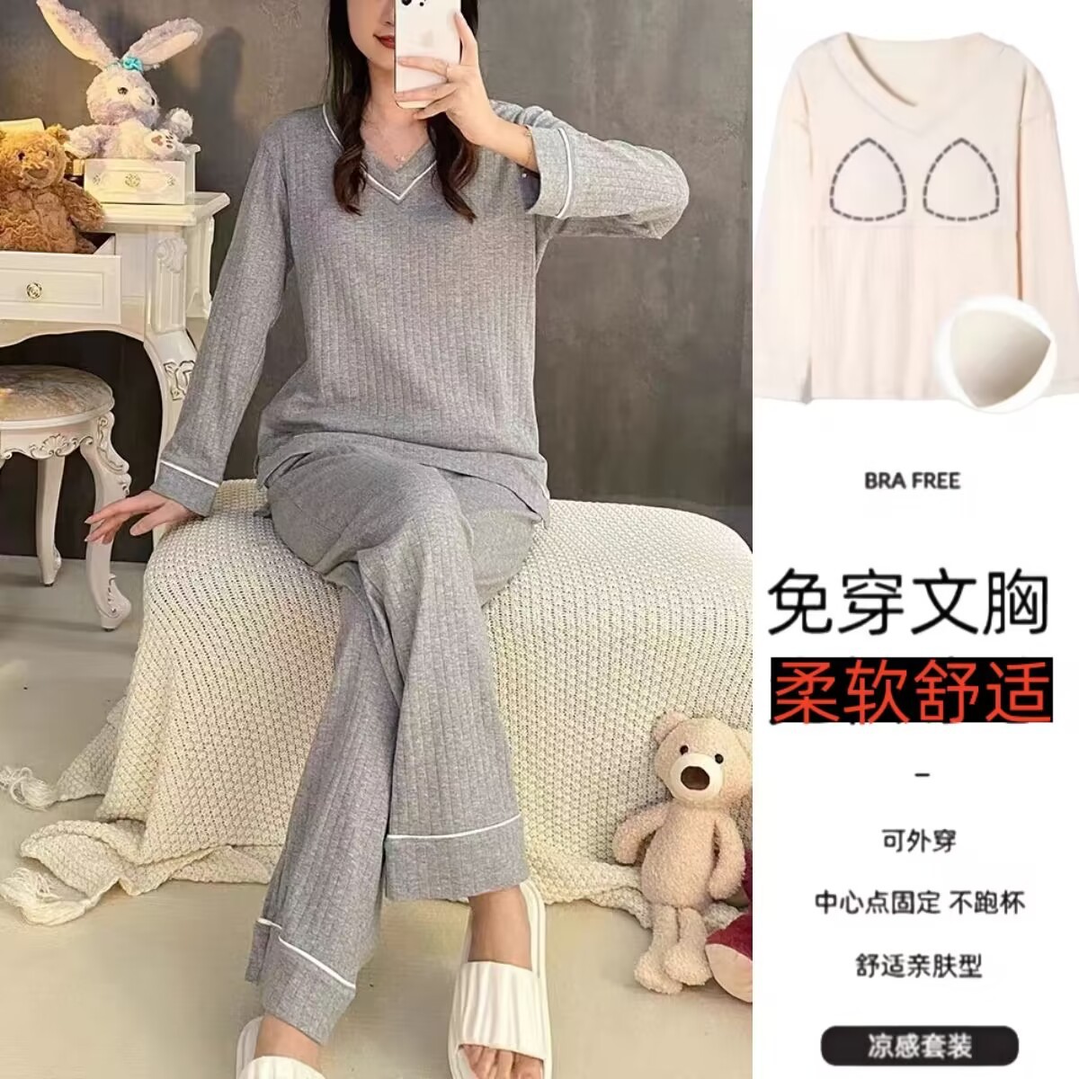 [В комплекте с накладкой на грудь] Серый V-образный вырез, высококачественная версия + улучшенная ткань