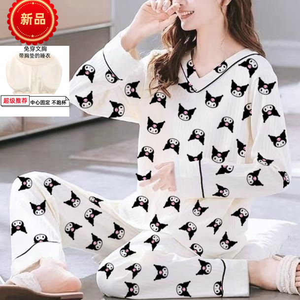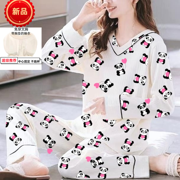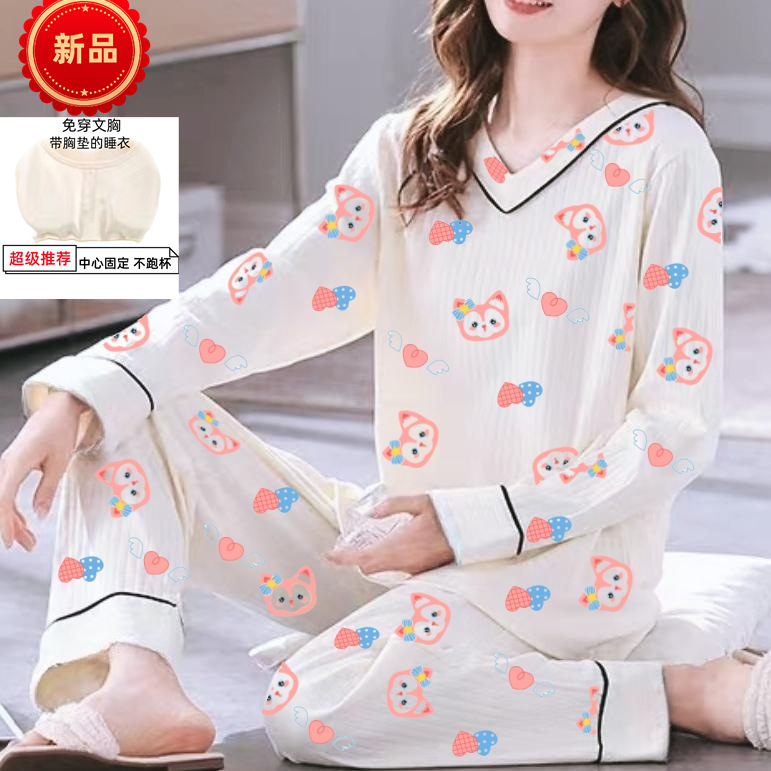 С нагрудными подушками пижамы дамы весенние и осенние студенты с длинными рукавами сладкие и милые девушки могут носить большие размеры домашней одежды