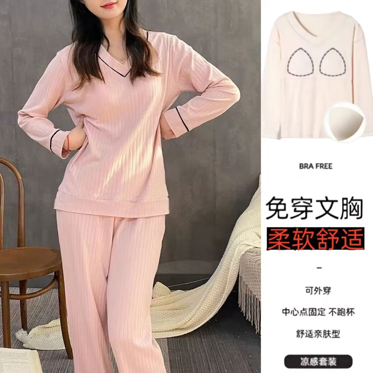 [С вставкой для груди] Розовая версия с V-образным вырезом, высокое качество + улучшенная ткань
