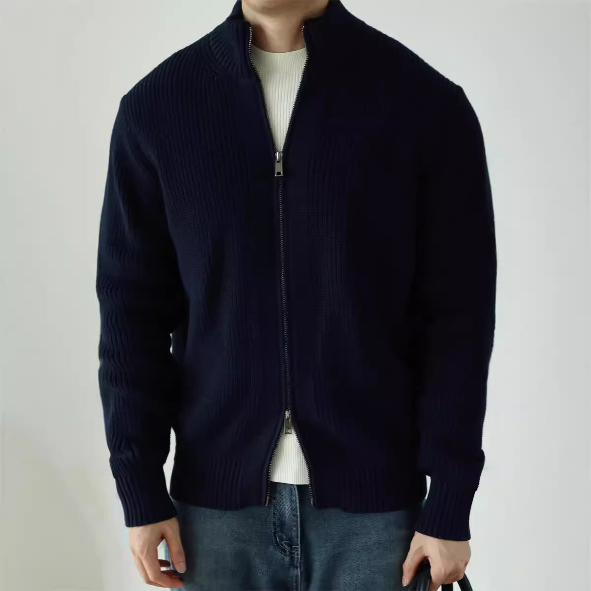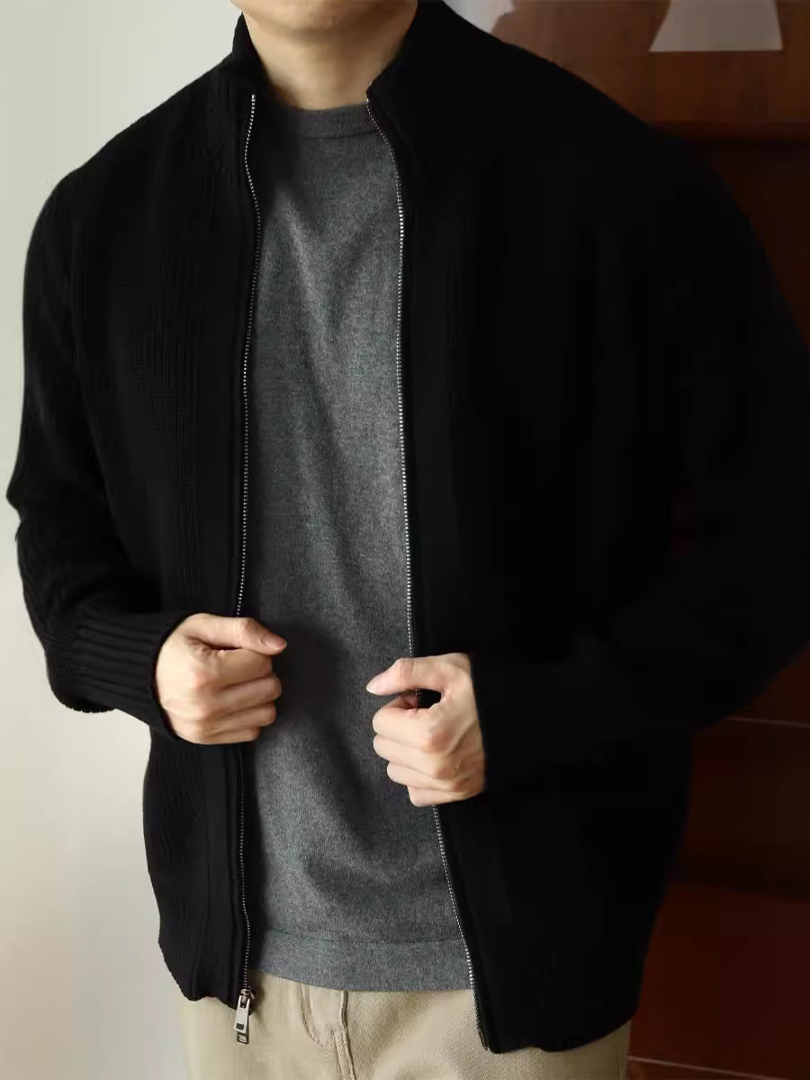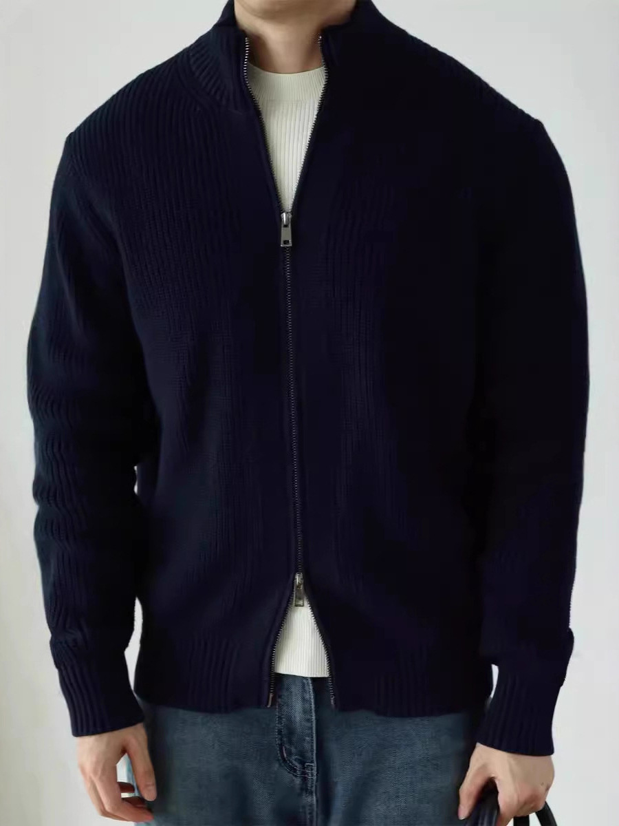 Главная страница > 2024 анти-шарик тяжелое двойное пальто на молнии вязаный свитер сплошной цвет толстый осенний зимний полувысокий воротник мужской новый стиль