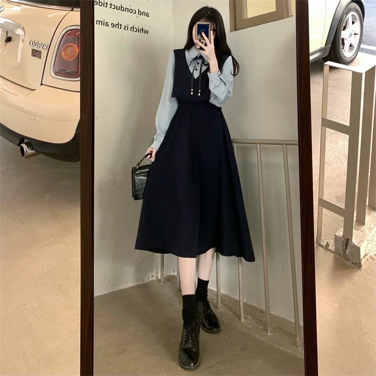 Главная страница > Осенний новый большой размер толстый мм темперамент тонкая длинная юбка французское ретро дизайн чувство поддельные две женские платья
