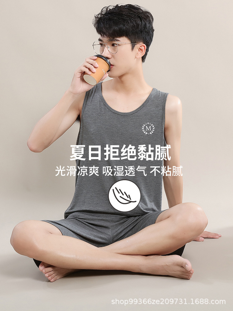 Главная страница > Мужская Пижама, летний ледяной шелк, тонкий модальный жилет, шорты, очень большой размер, домашняя одежда, костюм