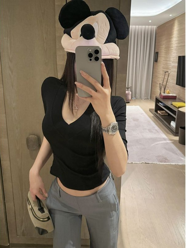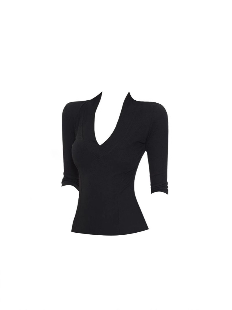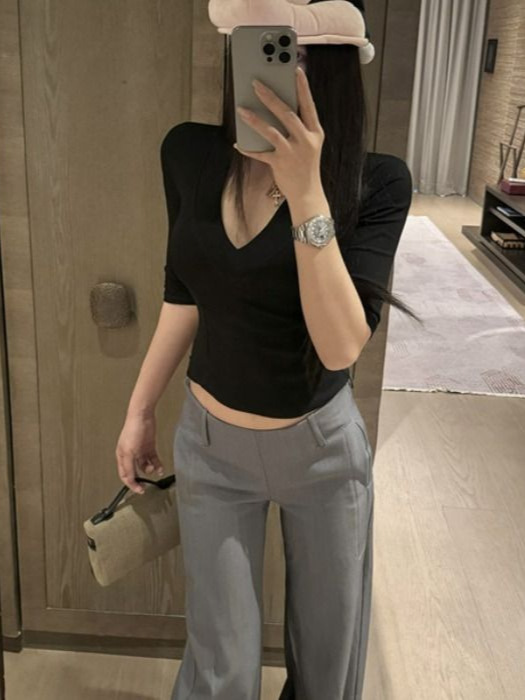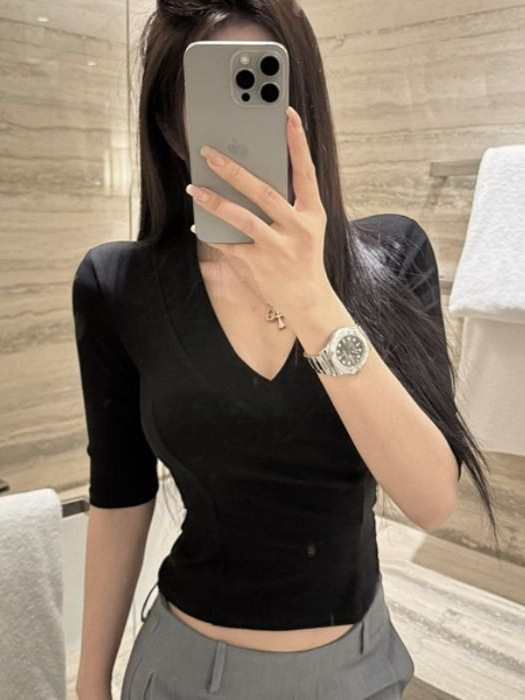 Главная страница > Лето 2025, новый стиль, глубокий v-образный вырез на правое плечо, элегантная сексуальная рубашка с половиной рукавов в стиле чистой страсти, тонкая нижняя рубашка, женская модная футболка с короткими рукавами