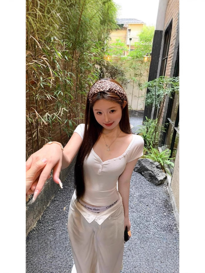 Главная страница > 2025 новый корейский стиль, сексуальная футболка для похудения, женская сексуальная футболка с короткими рукавами и v-образным вырезом, шикарный дизайн, топ для женщин