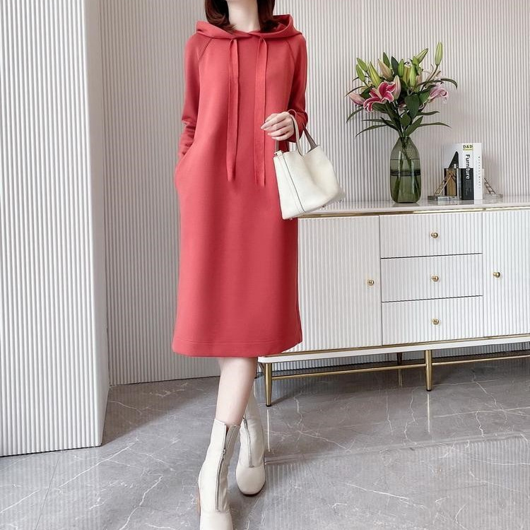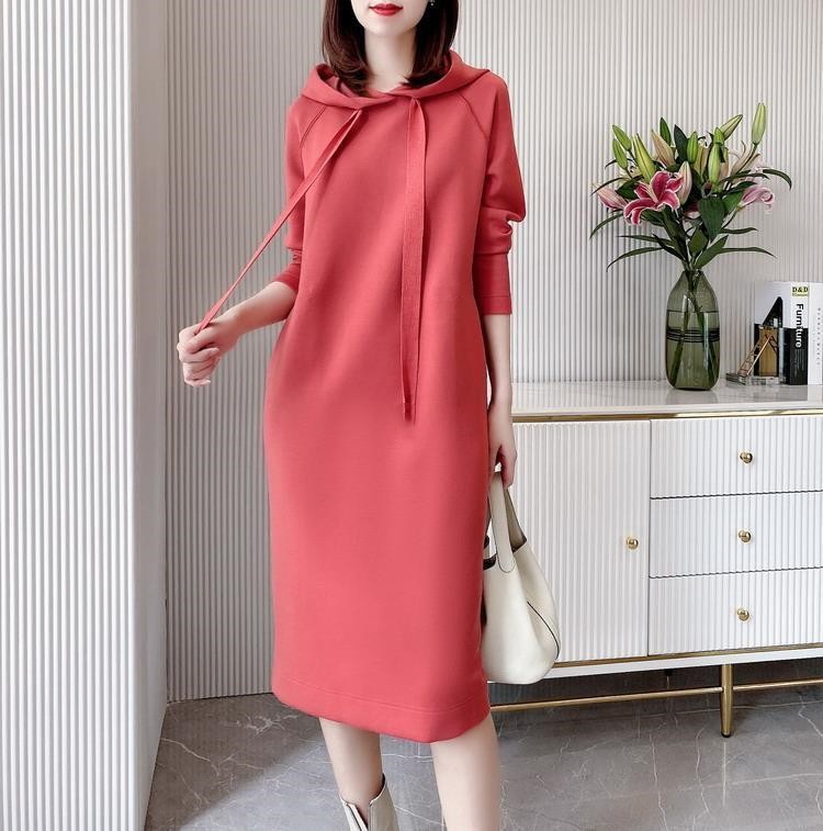 Главная страница > Весна и осень Новый элегантный длинный приталенный подходят для похудения сплошной цвет платье свободного покроя с длинным рукавом с капюшоном свитер платье для женщин
