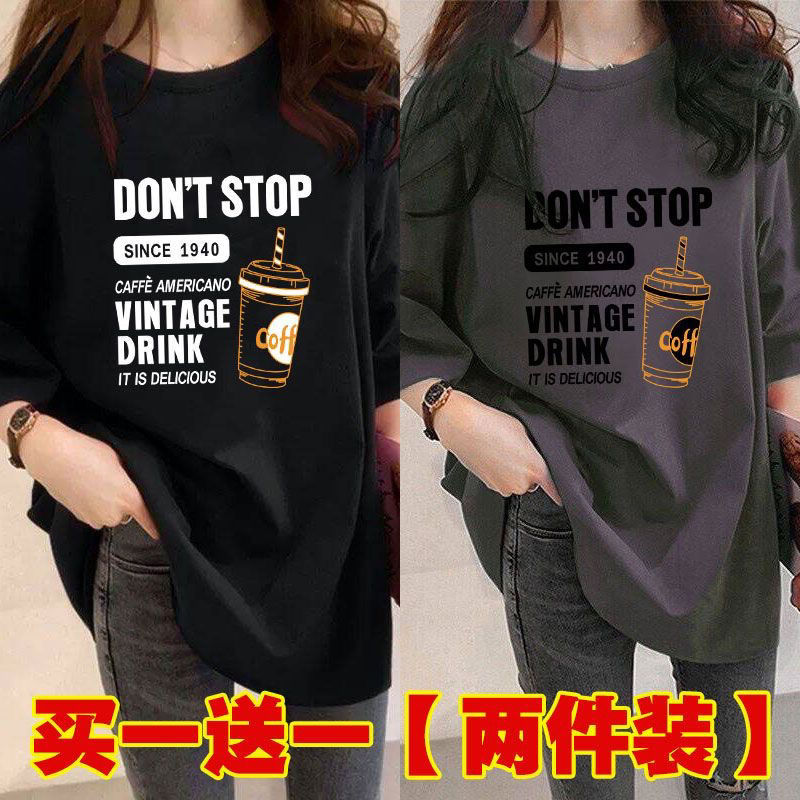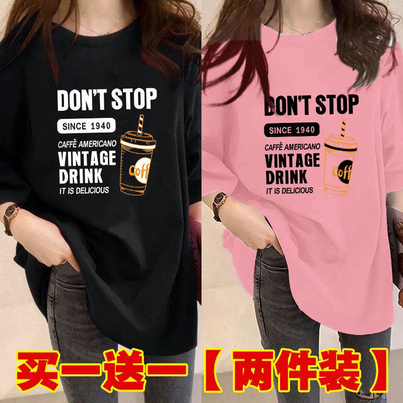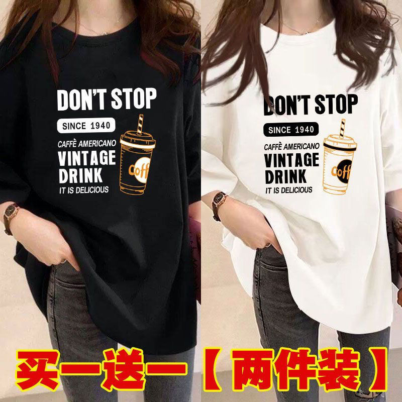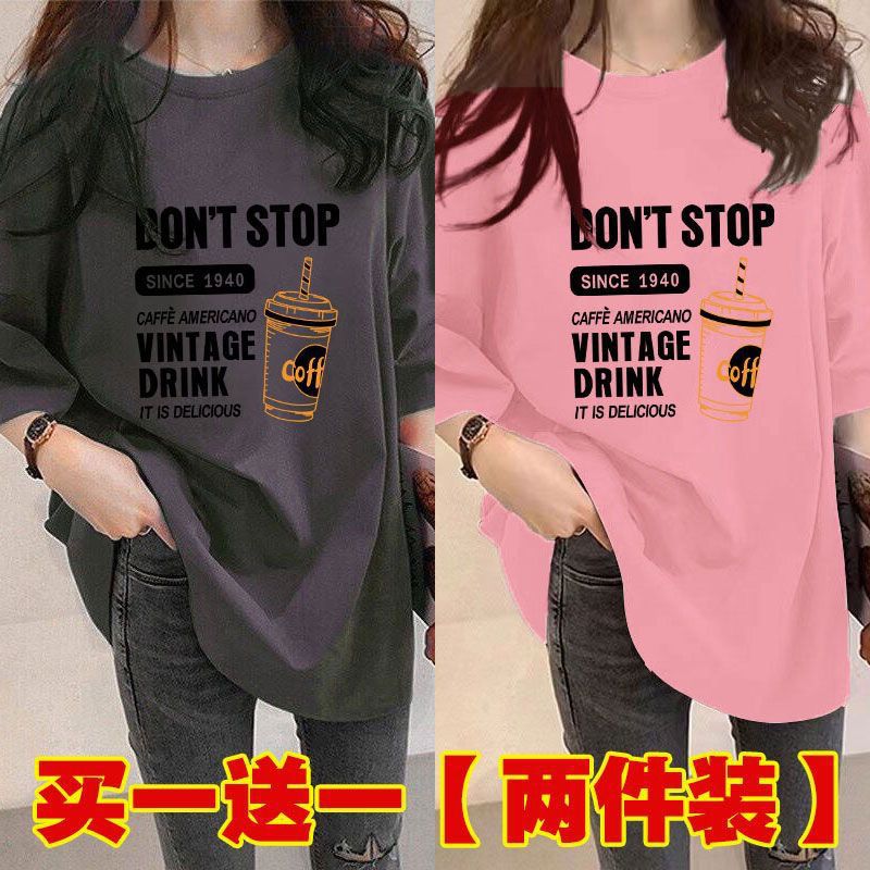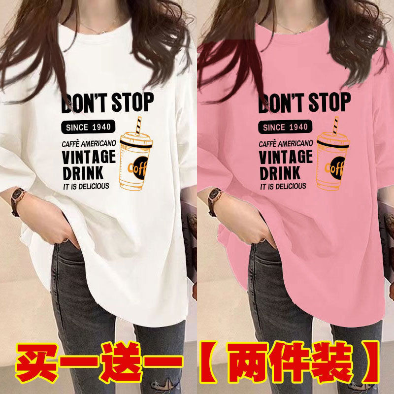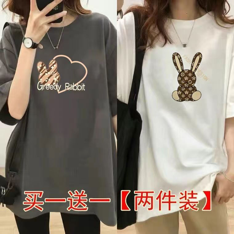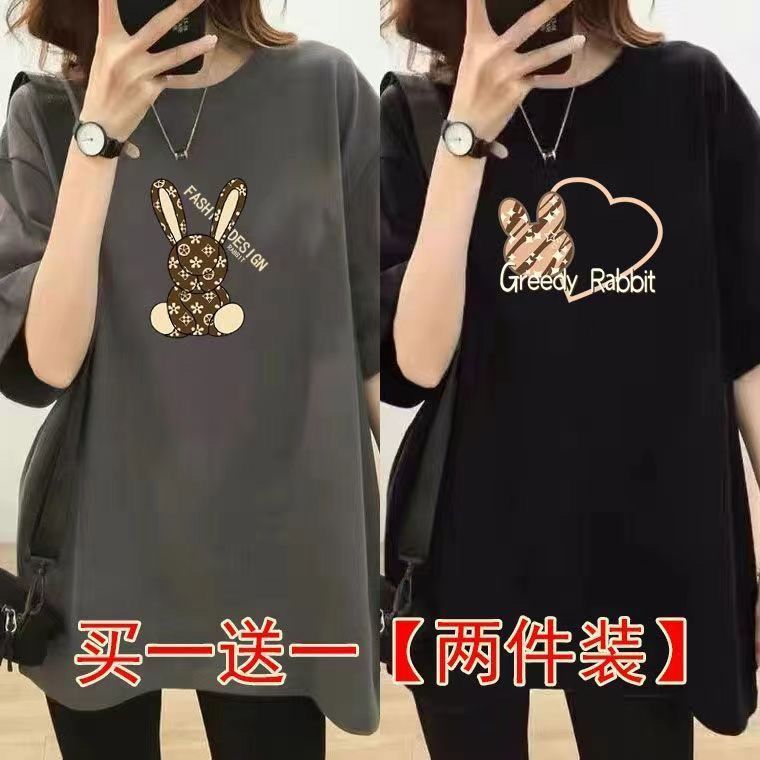 Главная страница > Женская футболка средней длины из одного/двух предметов, с короткими рукавами, новый свободный стиль средней длины, стиль ленивого возраста 100kg года, универсальный для женщин.