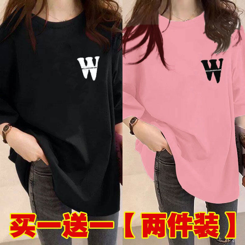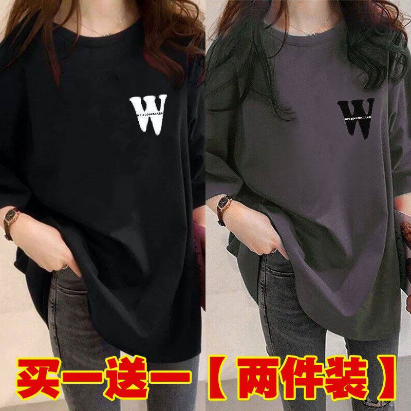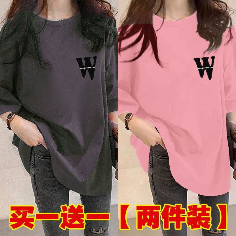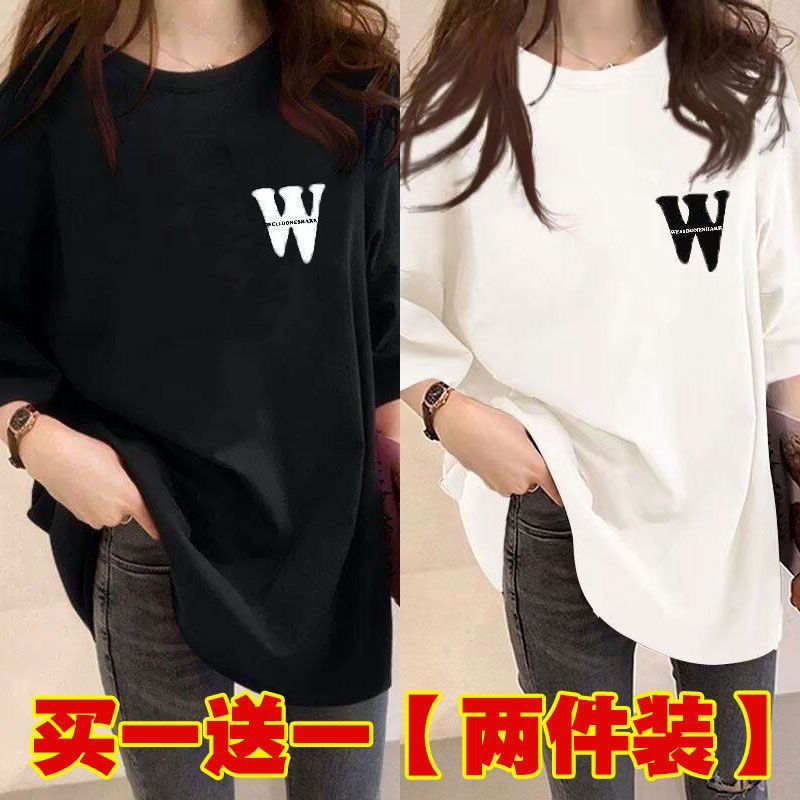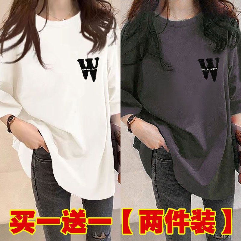 Женская футболка средней длины из одного/двух предметов, с короткими рукавами, новый свободный стиль средней длины, стиль ленивого возраста 100kg года, универсальный для женщин.