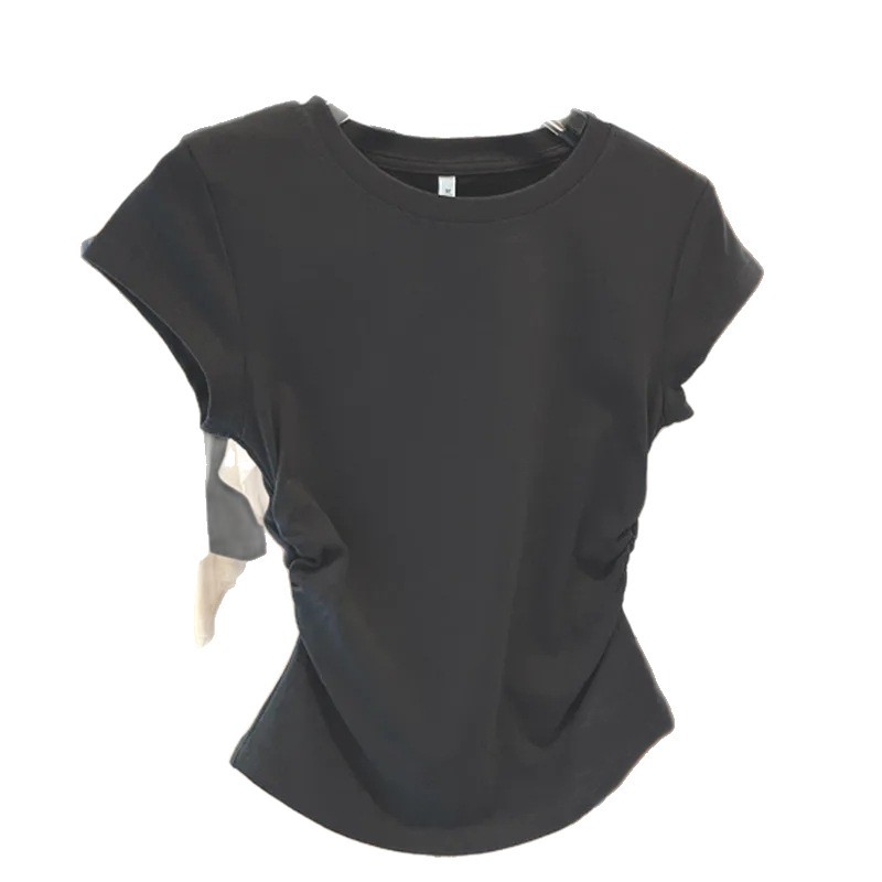Главная страница > 210 г, 40 шт., 92 хлопка, 8 спандекса, американская модная футболка, женская облегающая футболка с короткими рукавами, милый сексуальный топ на правое плечо