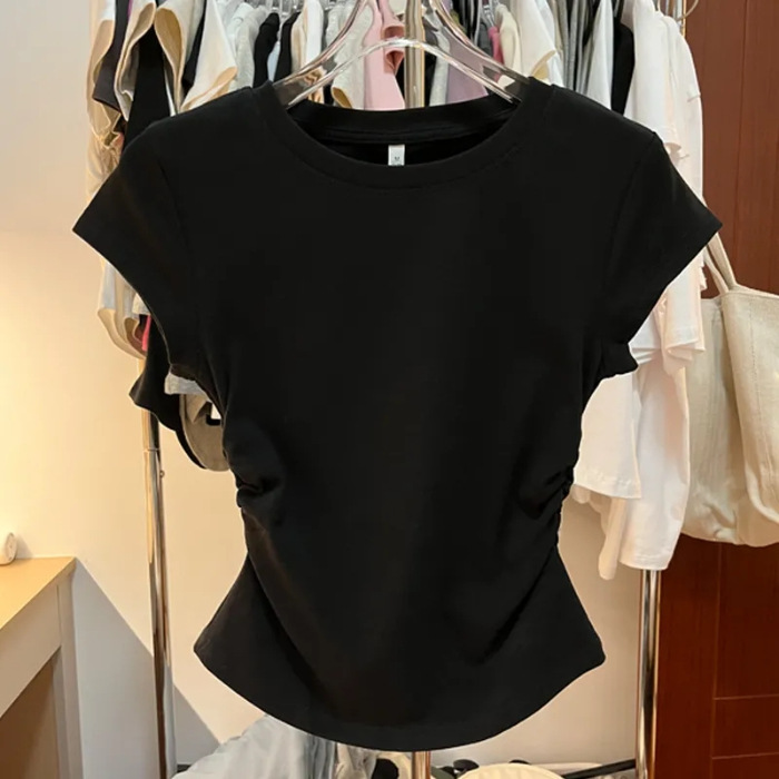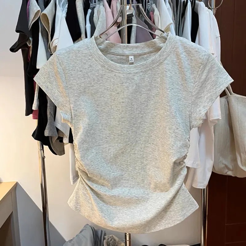 210 г, 40 шт., 92 хлопка, 8 спандекса, американская модная футболка, женская облегающая футболка с короткими рукавами, милый сексуальный топ на правое плечо