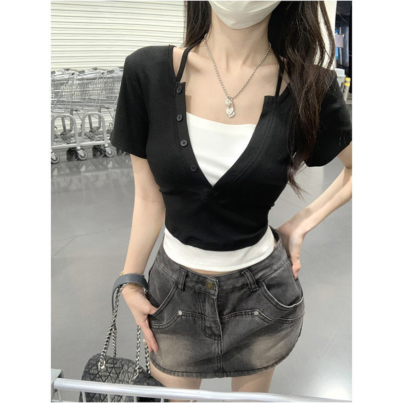 Американская горячая девушка поддельные две футболки женская рубашка с короткими рукавами