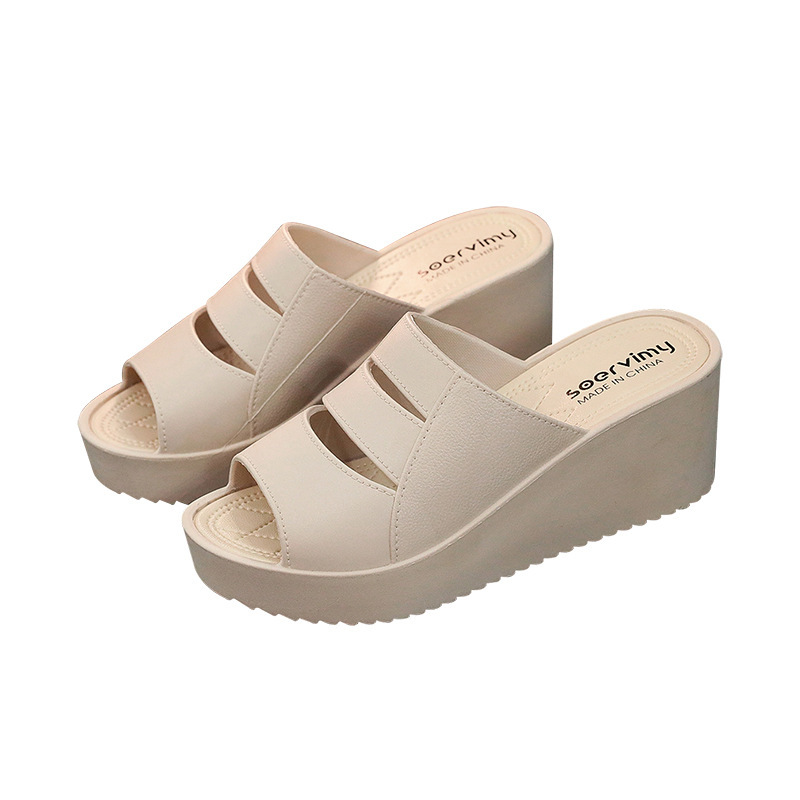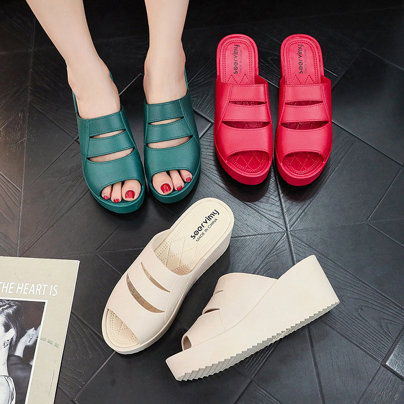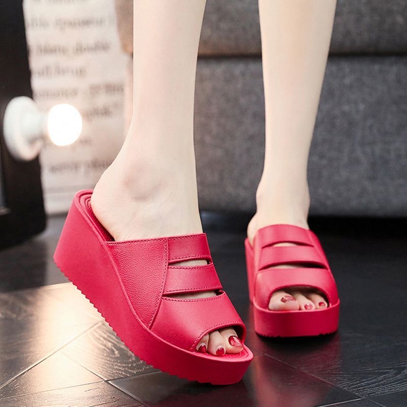 Главная страница > Женские тапочки на высоком каблуке для летней верхней одежды, нескользящие сандалии на толстой подошве для ванной комнаты, для домашнего использования, на платформе на танкетке, с вырезом