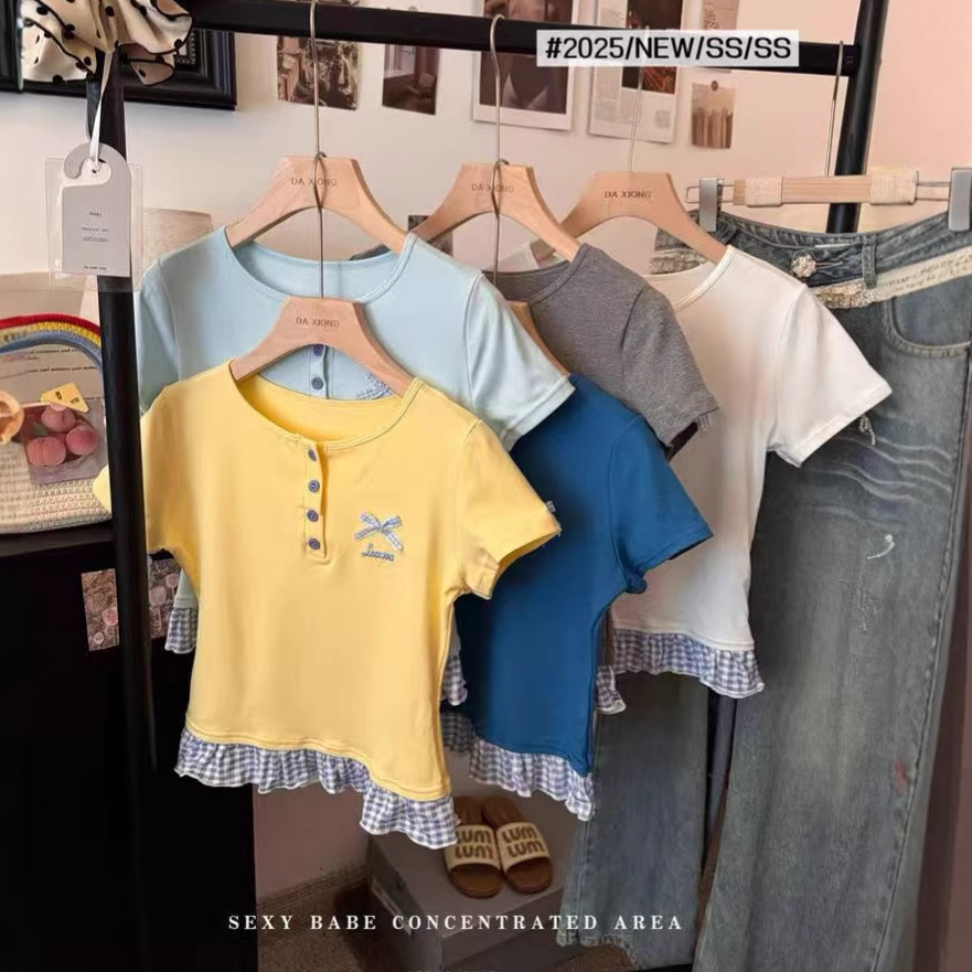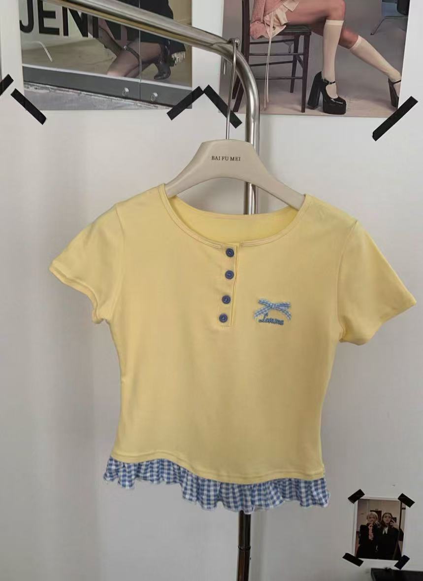 Желтая женская футболка с короткими рукавами и короткими рукавами, новая облегающая футболка, короткий сладкий и пряный топ