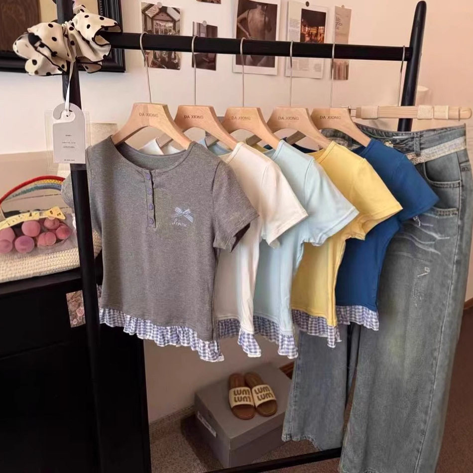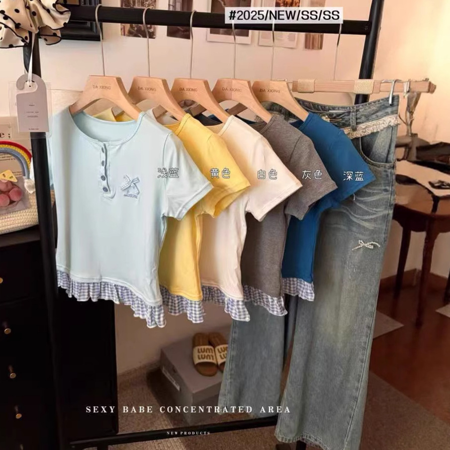 Главная страница > Желтая женская футболка с короткими рукавами и короткими рукавами, новая облегающая футболка, короткий сладкий и пряный топ