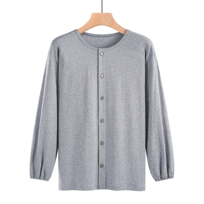 Главная страница > Весенний тканый кардиган из чистого хлопка с круглым вырезом для мужчин среднего и пожилого возраста, летняя свободная утренняя одежда для упражнений с тонким вырезом, домашняя одежда
