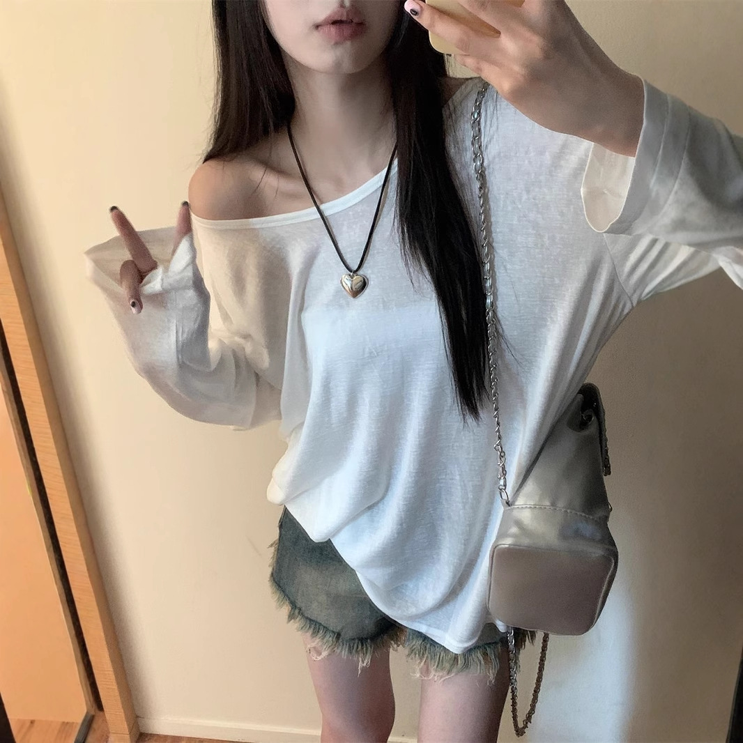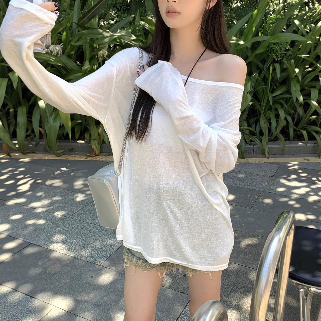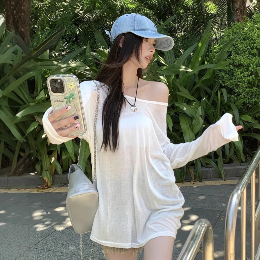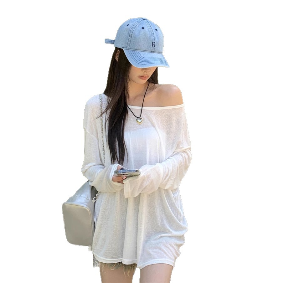 Главная страница > Воздушная шифоновая солнцезащитная одежда для женщин, новинка лета 2025, тонкая сексуальная футболка с длинными рукавами, слегка прозрачная модная блузка для путешествий