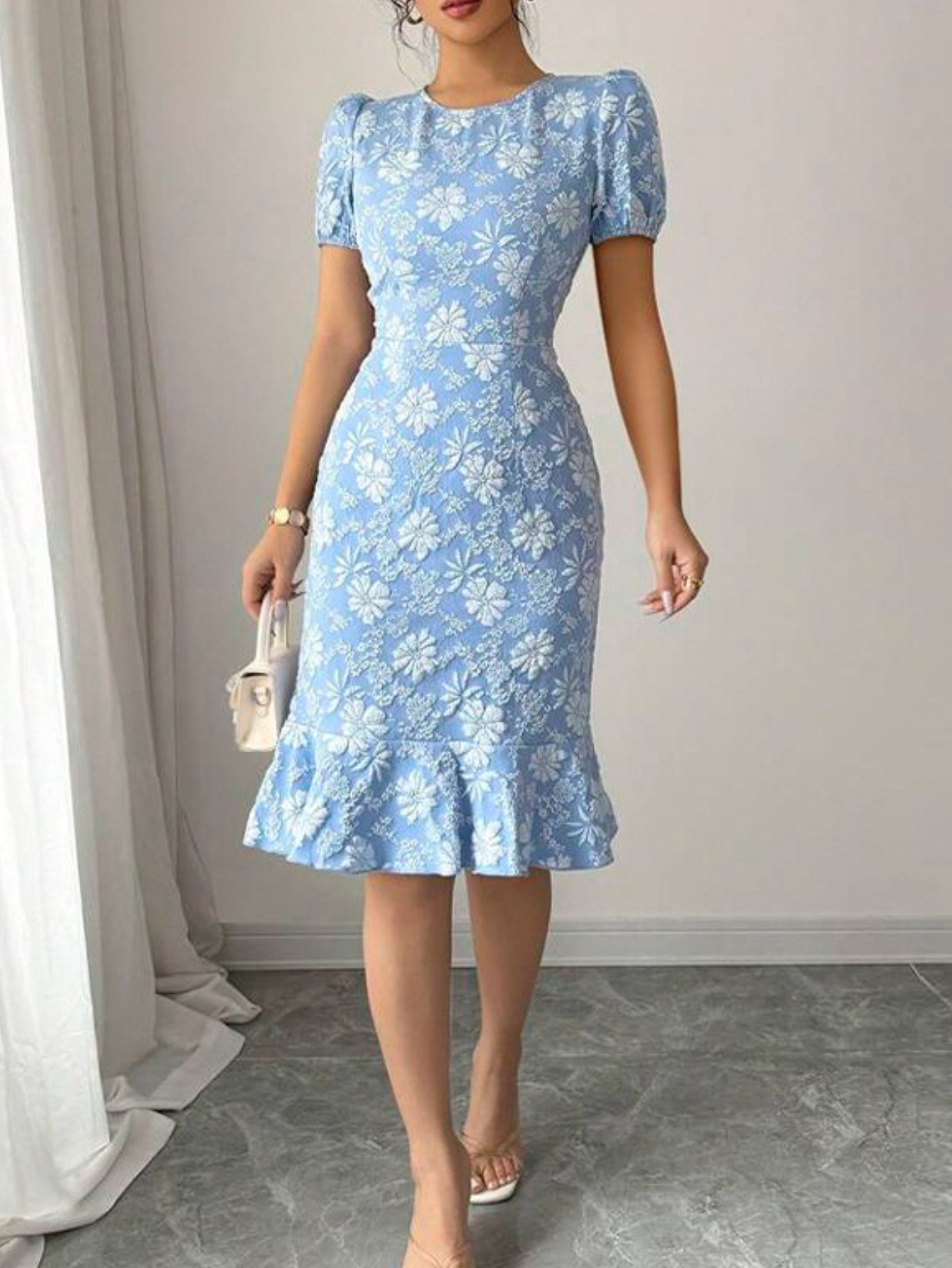 Главная страница > Летнее платье 2025 года с круглым вырезом, короткими рукавами и вышивкой, с рюшами, для женщин, размер талии 8232, экспорт через Amazon в Европу и Америку