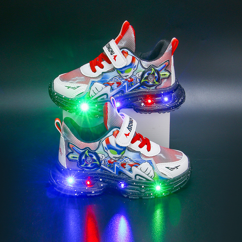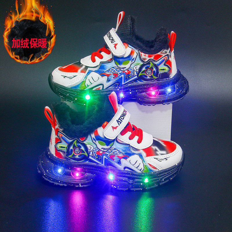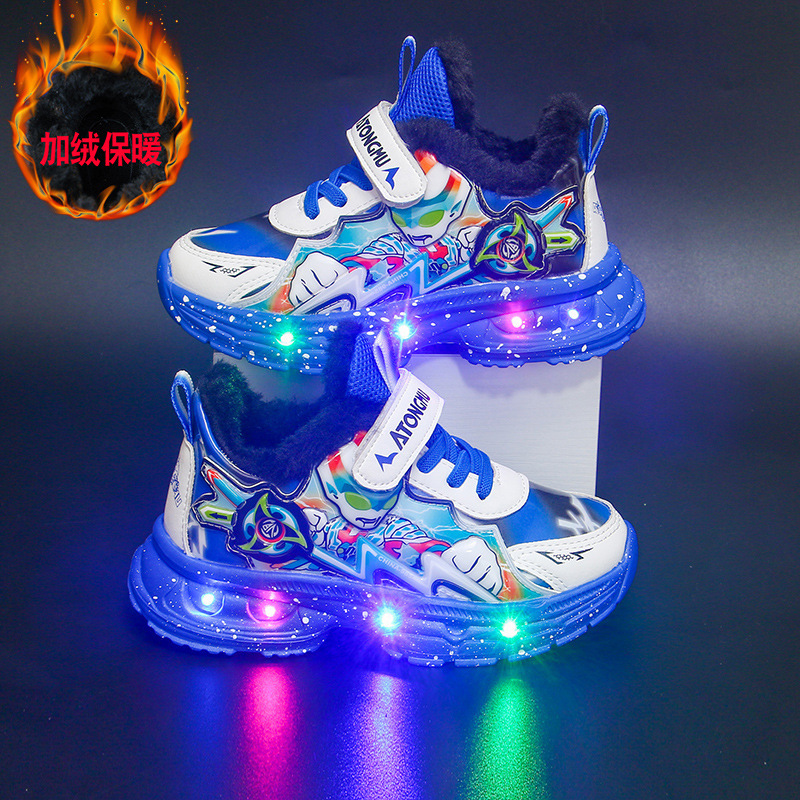 Детская спортивная обувь с лампой Кожаная нескользящая осенняя новая обувь для мальчиков